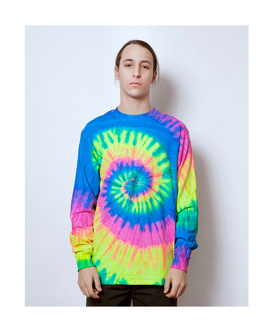 フロリダ・マイアミの香り漂うマルチなカラーリング!熟練の技で染められたロングスリーブタイプのタイダイTシャツ。U.S.発の本格的なタイダイブランドCOLORTONE(カラートーン)のタイダイTシャツは、1枚1枚ハンドメイドで染めているので、柄・模様・色合いが微妙に異なり唯一無二のオンリーワンの味わいをお楽しみ頂けます。注目度S級のこちらのアイテム、ストリートでももちろん、クラスTシャツやダンスイベント、様々なフェスなどにもおすすめです。バックプリントや袖プリントなどアイデア次第で多彩なデザインが完成します。オレンジパームでは1点から加工承りますので、まずはご相談くださいませ。※手作業での染色加工のため、柄・模様・色合いに個体差がございます。※洗濯時に染料が他の衣類に移りますので白や薄い色の物とは一緒に洗濯はしないでください。濃色のものは白色や淡色の物と分けて洗ってください。※ハンドメイドで1点1点染めている為、柄・模様・色合いに個体差がございますので、ご了承お願いいたします。