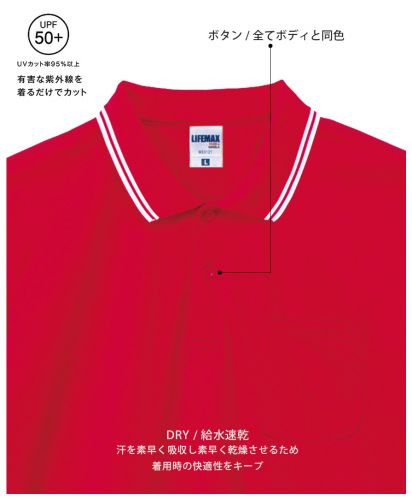 襟や袖口の2本のラインがアクセント。話題の高機能素材「ポリジン」加工のドライポロシャツ。ペンやメモをさっとしまえる左胸ポケットもあると便利ポイント。ボタンは全てボディーと同色。GS~GLサイズも展開しており ウエストをシェイプしたレディースらしいシルエットです。天然の銀イオンにより微生物やバクテリアの繁殖を抑制する、抗菌・防臭加工技術の「ポリジン」生地は、汗のにおいや部屋干し臭の元となる菌の成長を元から抑制します。有効成分である塩化銀はリサイクルさ れた銀を可能な限り使用しており環境にも優 しく無香料なので周りの人にも安心安全。その効果は、洗濯を繰り返しても衰えず長続き!そのうえ、UVカット率95%着るだけで紫外線がカットできる!汗をかきやすいお仕事や接客業の方におすすめですよ。多機能なのに驚くほど安い、最強ポロシャツです。オンリーワンのデザインなので無地のままでも、カラーを揃えれば簡単&激安でユニフォームとしての「お揃い感」がでますよ。サイズもレディースサイズ~メンズビッグサイズまでと大きく展開。男女お揃いもOKです! 更にネームやロゴをプリントすれば、魅力倍増!刺繍もたくさんのお客様にご好評いただいております。オリジナルのネームも作成から、加工、仕上げまで、一貫して作成いたします。