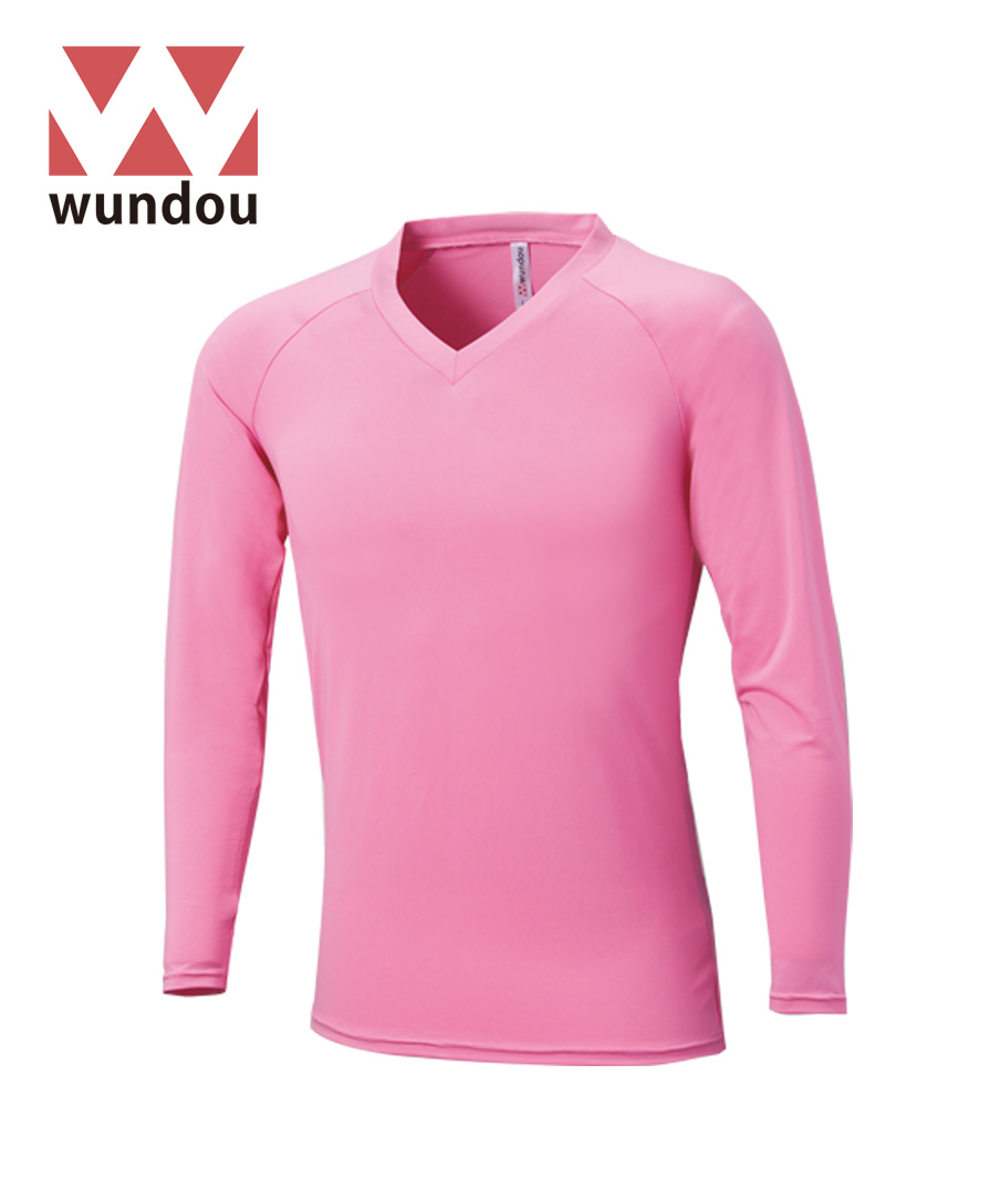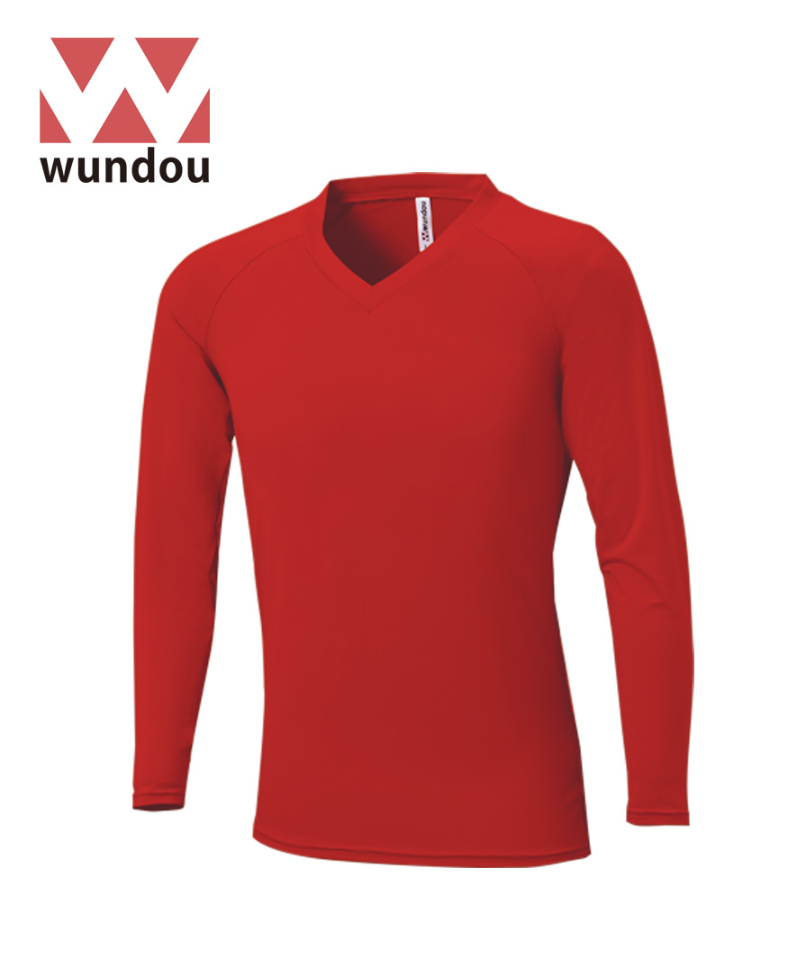 動きやすさと快適さを両立した、wundou(ウンドウ) のカラーインナー長袖Vネック。浅めに設計されたVネックはどんなユニフォームにも合わせやすく、首元からインナーがはみ出さない絶妙な仕様になっています。サッカーや野球、バスケットボールの試合用インナーとしてはもちろん、ランニングやトレーニング、フィットネスシーンでも人気のスポーツインナー。