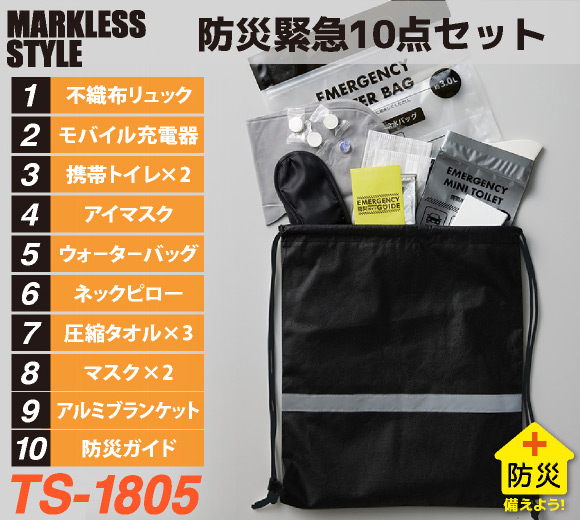 防災リュック10点セット!乾電池式のモバイル充電器など最低限必要な防...