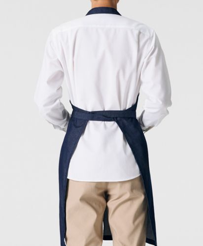 またワーカーのために考え抜かれた機能面も充実!ペンも挿せるネーム挿しループ付きの胸ポケット、フロントには両サイドポケット、足の動きを妨げず男性の方でも動きやすいフロントベンツ入り。また胸元で紐の長さを自由に調整できるので、幅広い体型の方にもフィットします。こだわりのリベットがデザインのアクセントになっているのもポイントです。