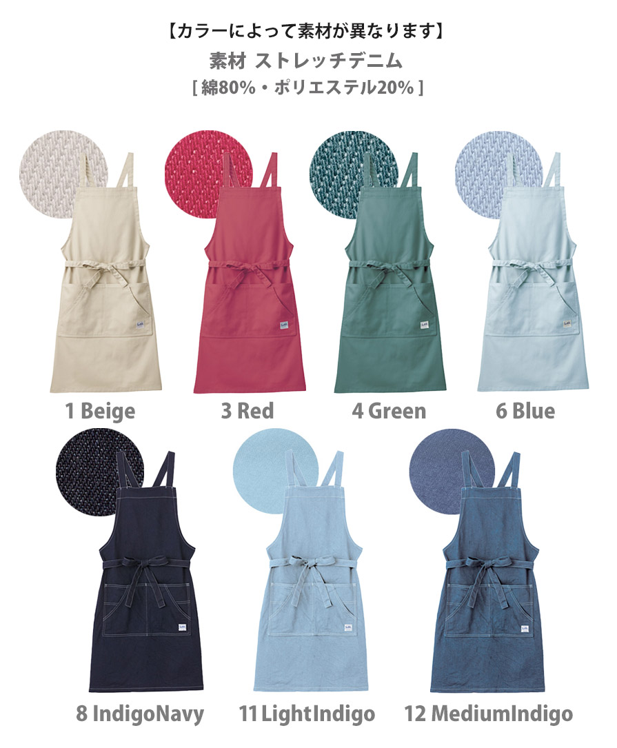 同デザインの生地違い、 Lee 胸当てエプロン ストレッチダック素材(カーキ、キャメル、ネイビー)はこちらLeeの全商品一覧はこちらから