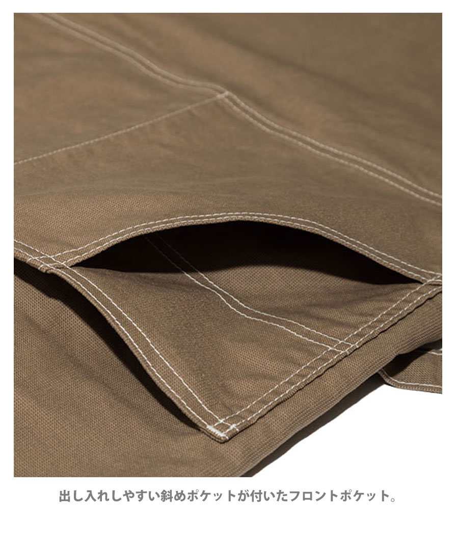 フロントには出し入れしやすい斜めポケットと、上下・左右に分かれたダブルポケット式の収納スペースを配置。ペンやメモ、ツールなどを整理しやすく、作業効率もアップ。背中でクロスするX型の肩紐は長時間の着用でも首に負担がかかりにくく、ユニセックスで使える設計。さらにLeeワークウェアオリジナルのネームタグが、さりげないアクセントとして存在感を放ちます。