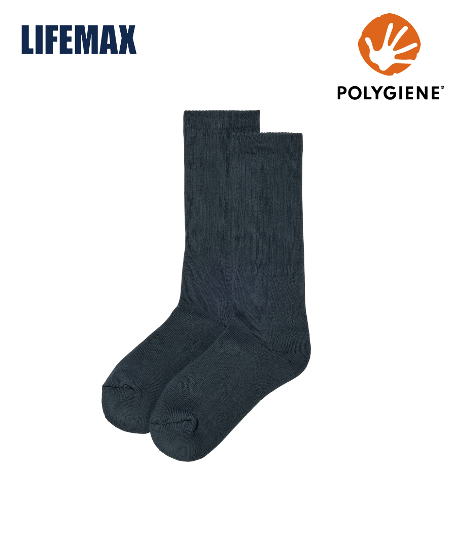 メンズ、レディース問わずワンサイズで履ける!ユニセックスソックス。【ニオイを気にする職場で】【汗をかきやすい現場で】【部活やスポーツシーンで】【通勤・通学に】バクテリアの繁殖を銀イオンの効果で抑える抗菌防臭ソックスです。ポリジン抗菌加工は繊維そのものに施してあるため、ニオイを発生源から防いで無香料仕様。洗濯にも強く効果が長年持続します。