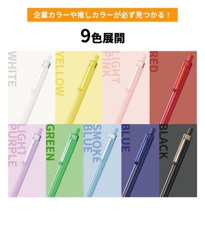 豊富なボディカラーとクリップ部分のスケルトンデザインが魅力!企業の販促品やノベルティ、学校やイベントの記念品にぴったりな低コストのボールペンです。カラーバリエーションが豊富で、企業カラーやチームカラーに合わせたオリジナルグッズの作成にも最適。また推し活グッズとしても人気で、イベントやライブでの配布用や物販用として活用できます。