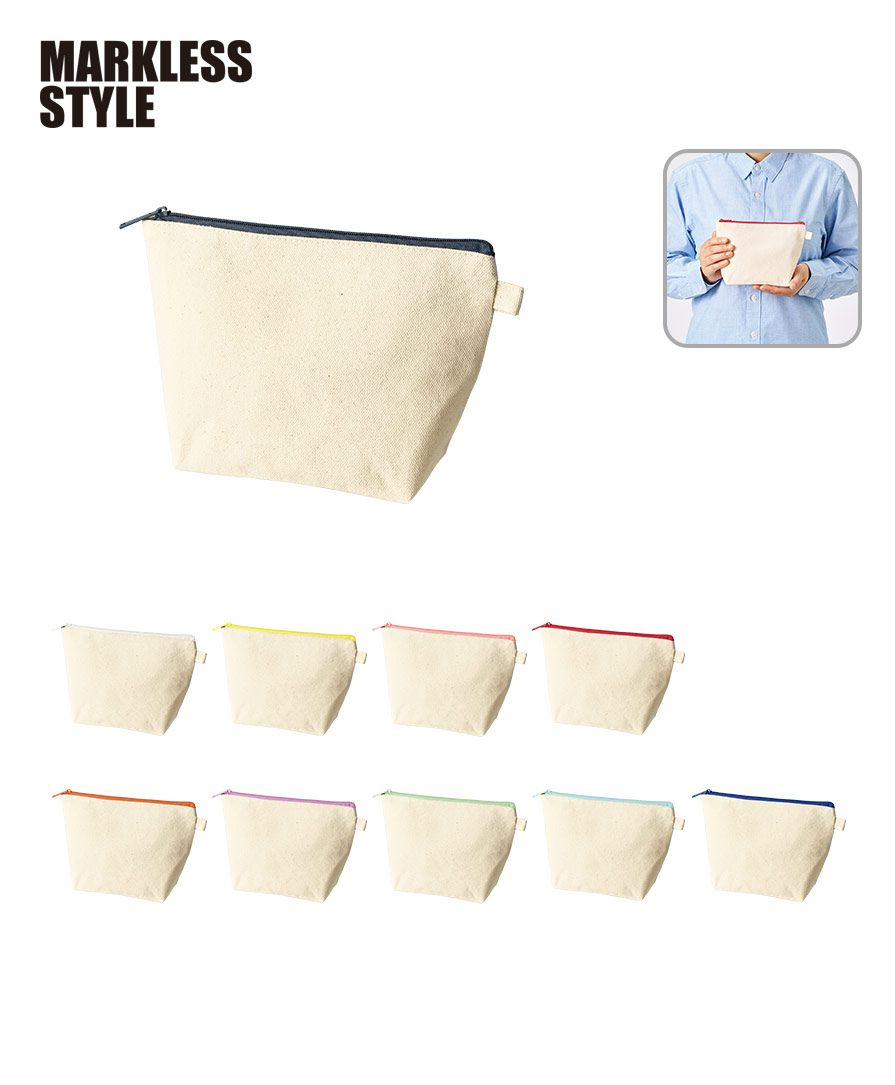 毎日の必需品をスマートにまとめられる、マチ付きの舟形ポーチ。ナチュラルなキャンバス生地に、カラフルな10色ファスナーがアクセントになり、シンプルながら存在感のあるデザインです。収納力の高さが魅力で、コスメポーチやトラベルポーチとしてもぴったり。さらにサイドにはループが付いているので、キーホルダーやチャームをつけて自分らしいアレンジも楽しめます。