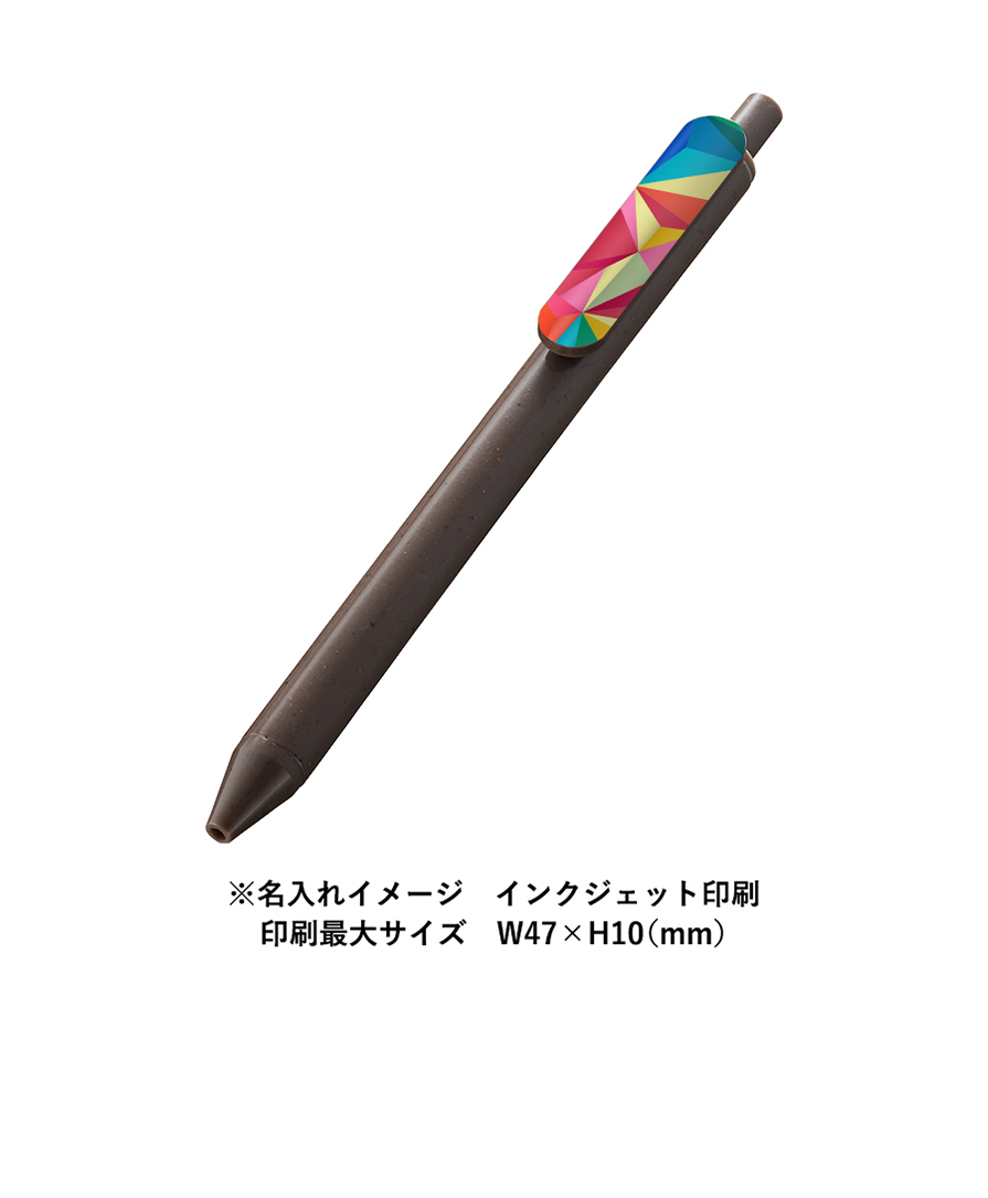 環境に配慮しながら、おしゃれなノベルティを作りたいなら「エコボールペン(コーヒー配合タイプ)」がぴったり。コーヒーを抽出した後に残る豆かすを再利用し、ボールペンとして生まれ変わらせたアップサイクル商品です。サステナブルな素材を使用しながら、普段使いしやすい0.7mmのブラックインクを採用。ナチュラルな風合いのボディカラーもポイントです。