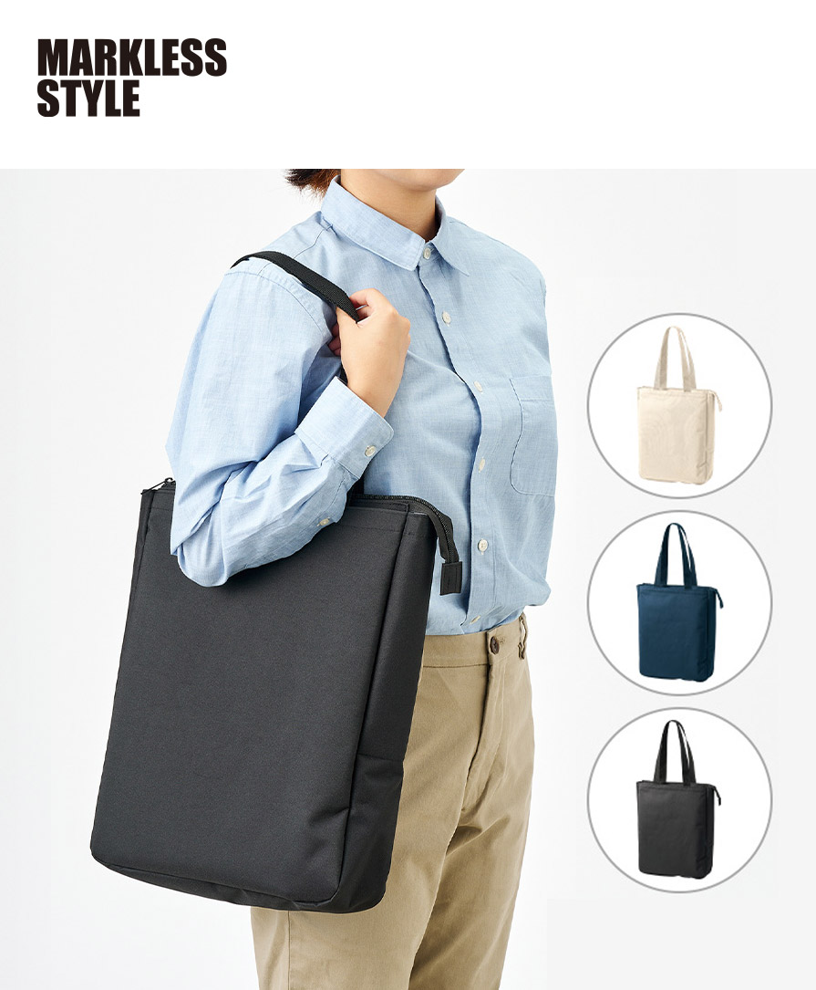仕事道具をスマートにまとめたい、そんな声にちょうどいい一枚。ノートPCがすっきり収まる設計の、ファスナー付きトートバッグです。PCトートバッグとして使いやすいサイズ感で、13.3インチ前後のノートパソコンと書類をまとめて持ち運べるのが魅力。通勤トートバッグやビジネス用トートとして、毎日の移動を軽やかにしてくれます。