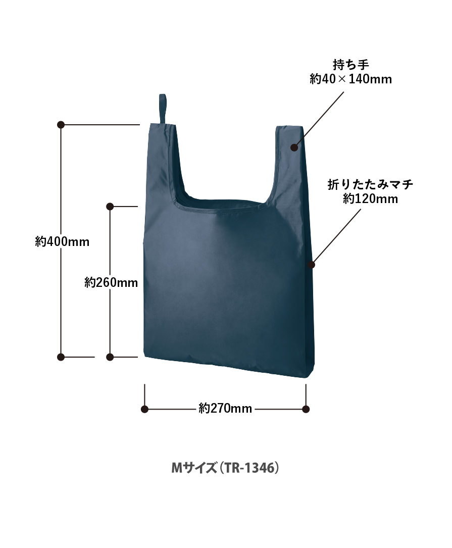 サイズはMサイズとLサイズの2サイズ展開。Mサイズは単三乾電池(約23g)程度の軽さで、持っていることを忘れるほどの軽量設計。お弁当などを入れるのに便利なサイズで、コンビニなどでのちょっとしたお買い物時に便利です。Lサイズは2Lボトルも余裕で入る大容量。荷物が多くなりそうなお買い物の日にぴったりです。