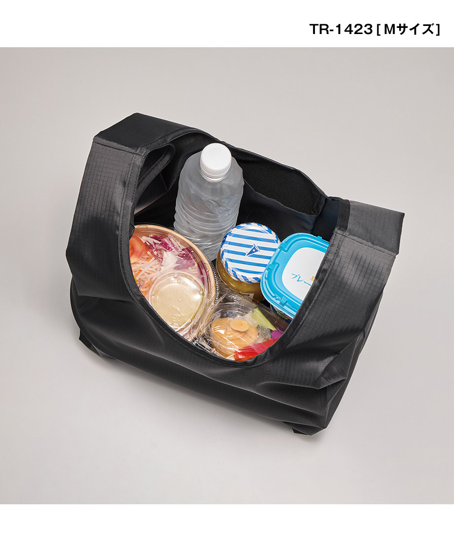 Mは、ランチや買い物に便利な約8L。Lはまとめ買い向きの約20Lでレジ袋代用バッグにも◎。ブランドやショップのロゴを入れた名入れバッグ、販促品・景品・記念品バッグにも好相性。エンタメ物販やアウトドアブランドのオリジナルバッグ、食品スーパーのノベルティバッグなど幅広いBtoBニーズに応えます。個人利用でもトートバッグ感覚で使える買い物バッグ・アウトドアバッグとして重宝。MARKLESSSTYLEの使いやすさをこのマルシェバッグで体感してください。