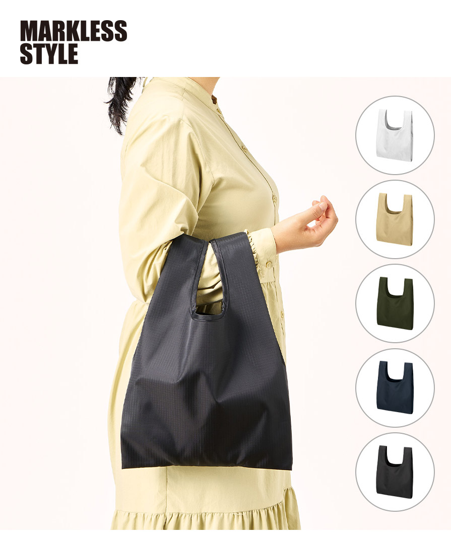 軽くてタフ。マークレススタイル(MARKLESS STYLE)の「リップストップマルシェバッグ」は、毎日の買い物からレジャーまで頼れるマイバッグ。破れに強いリップストップ生地で、折りたたみエコバッグとしても優秀。内ポケットにクルッと収納できるコンパクトバッグなのに、サイドのマチ付きで見た目以上に入る大容量エコバッグです。