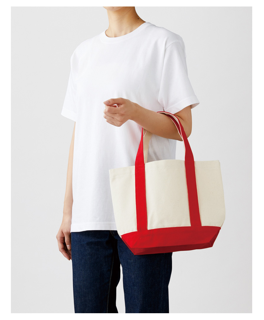 見た目と機能性を兼ね備えた16ozのバイカラーキャンバストートです。かわいいミニサイズながら、約8Lの容量を持ち、ランチバッグとしてはもちろん、ちょっとしたお出かけやデイリーユースにも最適です。ナチュラルなボディに映える持ち手と底部分の統一カラーが、トラッド感を際立たせ、おしゃれな雰囲気を演出します。