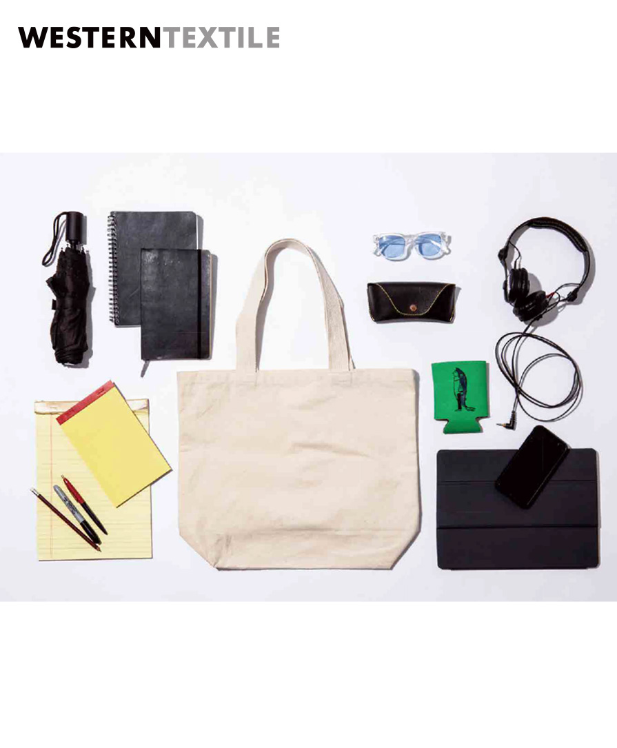オレンジパームでは、WESTERNTEXTILE(ウエスタンテキスタイル) の10oz コットンキャンバストートバッグを業界最安級の業務価格で1枚から販売中。無地のままのシンプルなデザインでもおしゃれですが、企業ロゴやオリジナルデザインのプリント加工にも対応。イベントやノベルティ、アパレルブランドのオリジナルアイテムとしてもおすすめです。大口注文でのまとめ買い割引もございますので、お気軽にご相談ください。