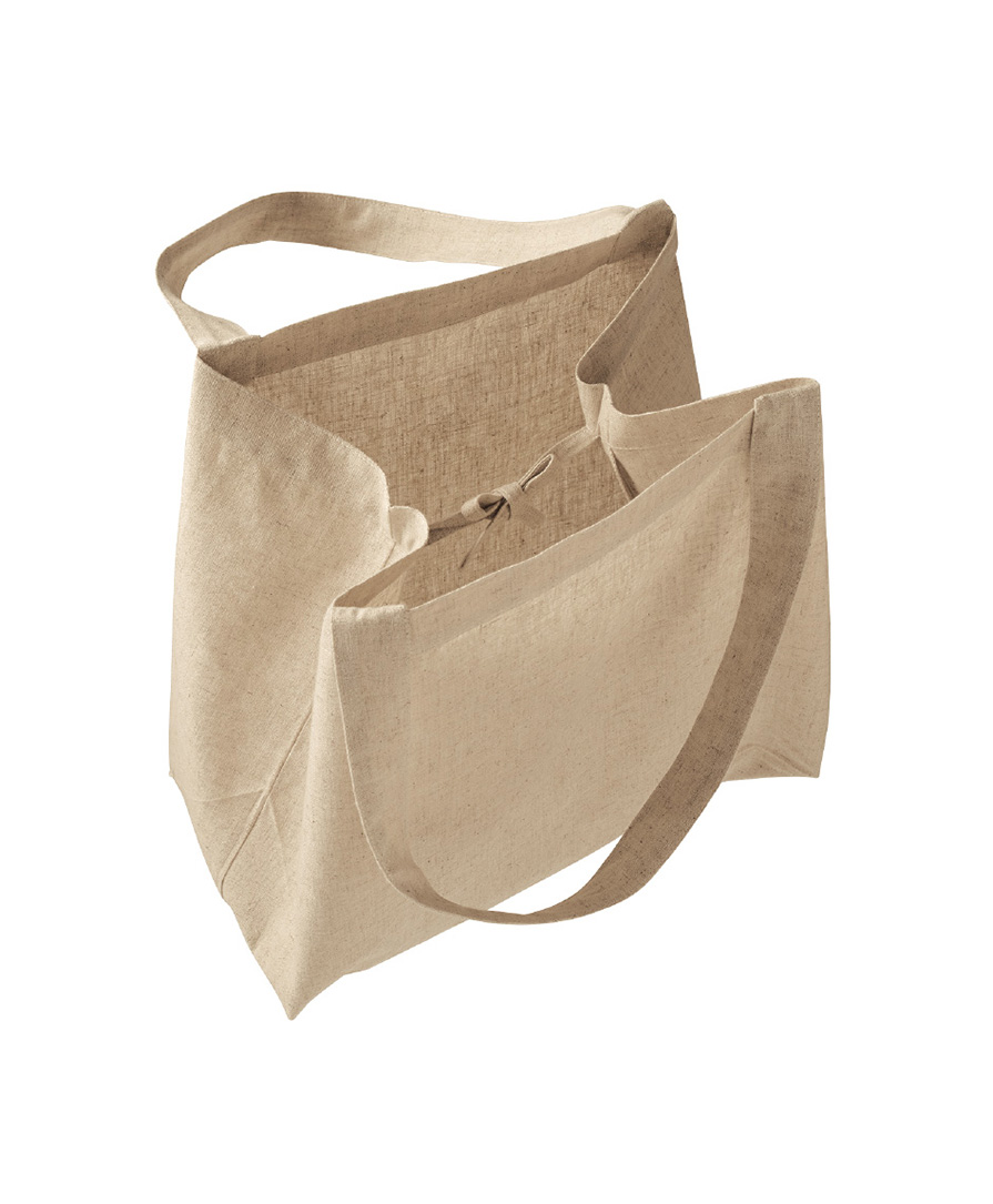 コットンにリネン(麻)を加えたこのバッグは、通気性と耐久性に優れ、繰り返しの使用や洗濯にも強いのが特徴です。使うほどに素材が肌に馴染み、ナチュラルな雰囲気が一層深まります。生成りの色味はエコな印象を与え、環境を意識する企業や団体にもぴったりのアイテムです。