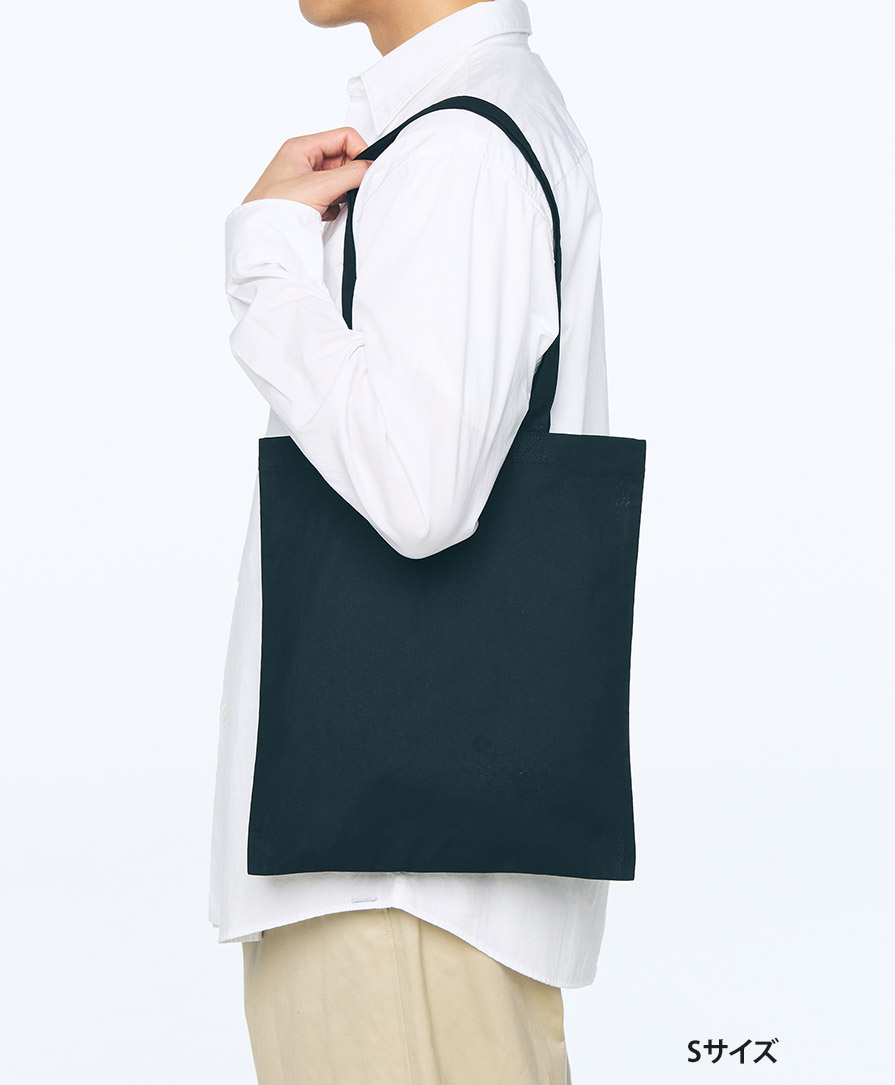 厚手アウターの上からもすっと掛けられ、A4サイズも収まる実用性は日常使いにちょうどいいバランス。ざっくりとした平織りの風合いが、無地トートバッグでも表情を持たせ、プリントトートバッグとしてもロゴやグラフィックが自然に映えます。折りたたみトートバッグとしてバッグインしておけば、エコバッグやサブバッグとしても活躍。