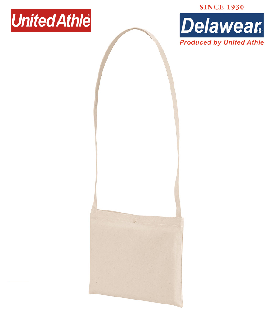 マチの無いフラットな仕様が使いやすい!最強のコスパを実現したユナイテッドアスレのセカンドライン「Delawear(デラウエア)」で大人気のキャンバスサコッシュ!この作りでこの価格は必見です。シンプルな作りと丁度良いサイズ感なので、ワンマイルのお出かけや旅先でのサブバッグ等々、アクティブなシーンで幅広くご活用いただけます。袋口には、ドットボタン付きが付いているので中身が飛び出す心配がないのも、ポイント。シンプルなデザインは、カスタマイズ用に最適です。アパレルや、アウトドアメーカーのOEM商品としてオリジナルサコッシュはいかがですか?驚くほどリーズナブルなので、様々なイベントやキャンペーンのノベルティやギフト用としても必見です。オレンジパームでは、1個からオリジナルのプリントや刺繍加工を承ってます。もちろん、無地のままでも格安卸プライスで通販可能です。【バッグに関してのお取り扱い注意】濃色の製品につきまして、濡れた状態で衣服等と強く連続してこすれると移染することがあります。