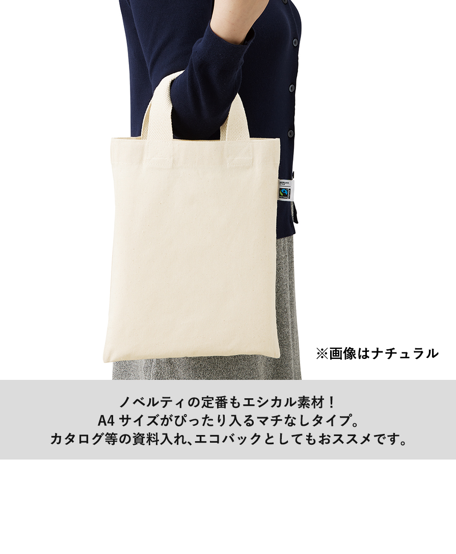 フェアトレードコットンを使用した、A4サイズの冊子がちょうど入る大きさのフラットバッグです。有機農法で育てられたオーガニックコットンを使用した地球にやさしい綿100%素材。