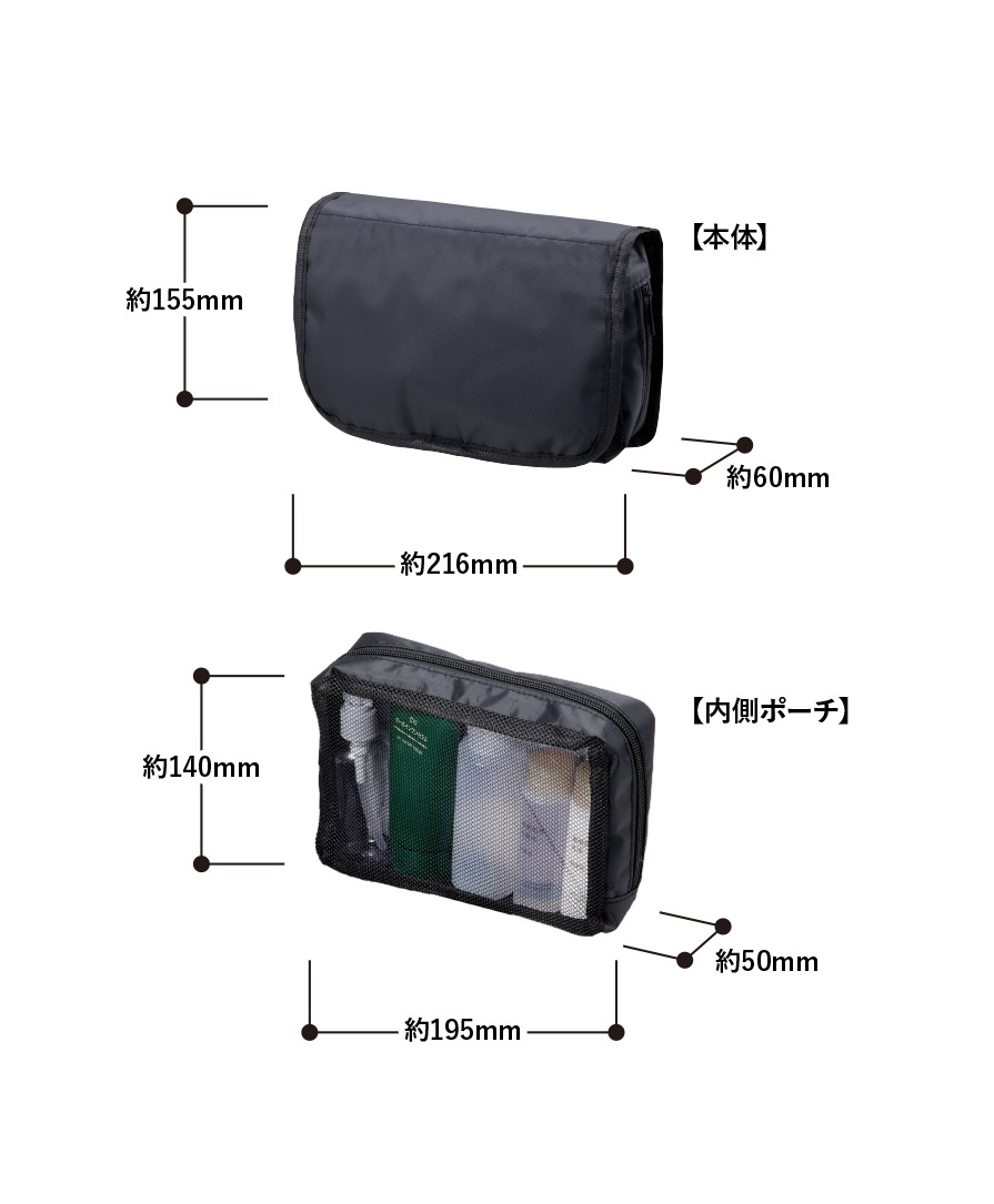 本体/約W216×H155×D60(mm) 内側ポーチ/約W195×H140×D50(mm)