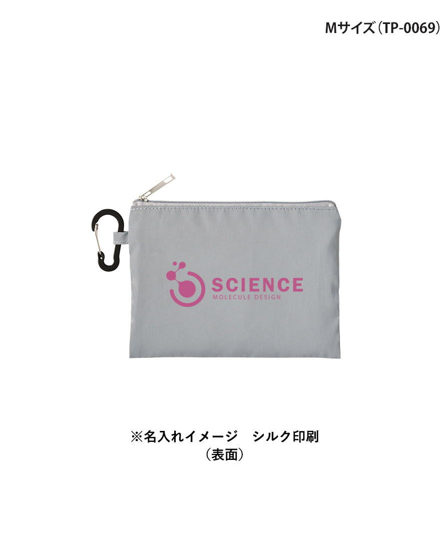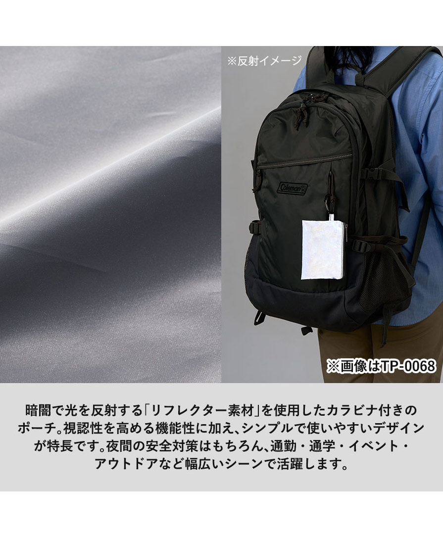単色プリントによる名入れが可能なオリジナルポーチなので、ノベルティポーチや販促品ポーチ、防犯グッズとしても提案しやすく、企業・学校・自治体案件にも相性抜群。夜道安全をさりげなくサポートするリフレクターグッズとして、実用性重視の方におすすめです。