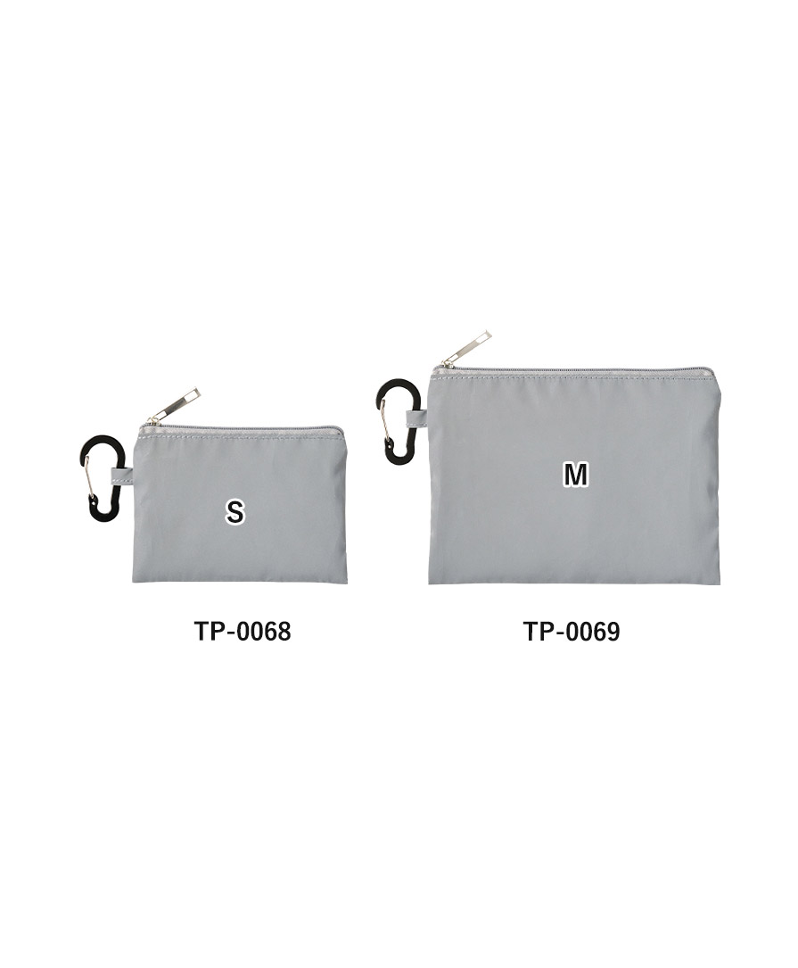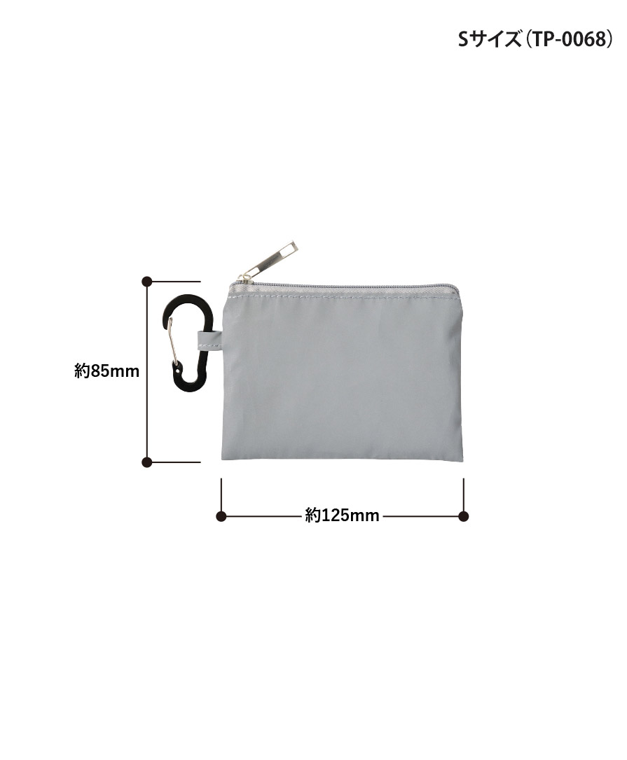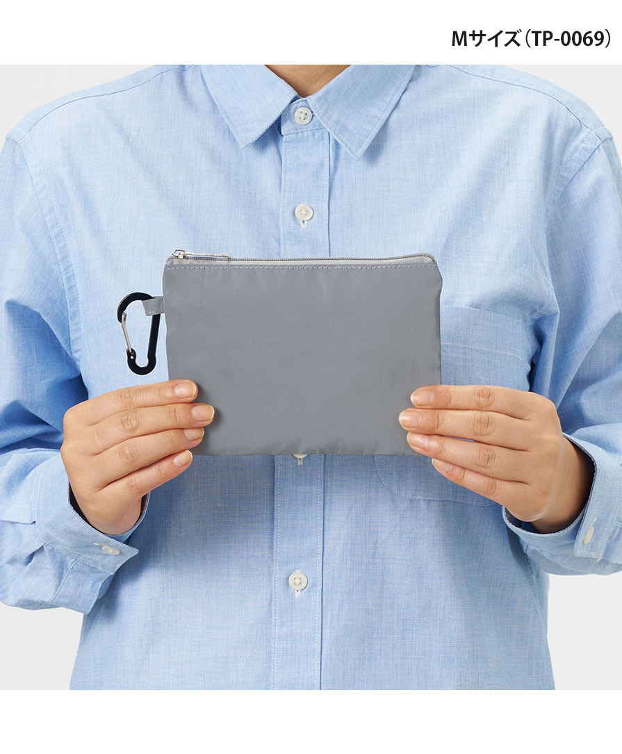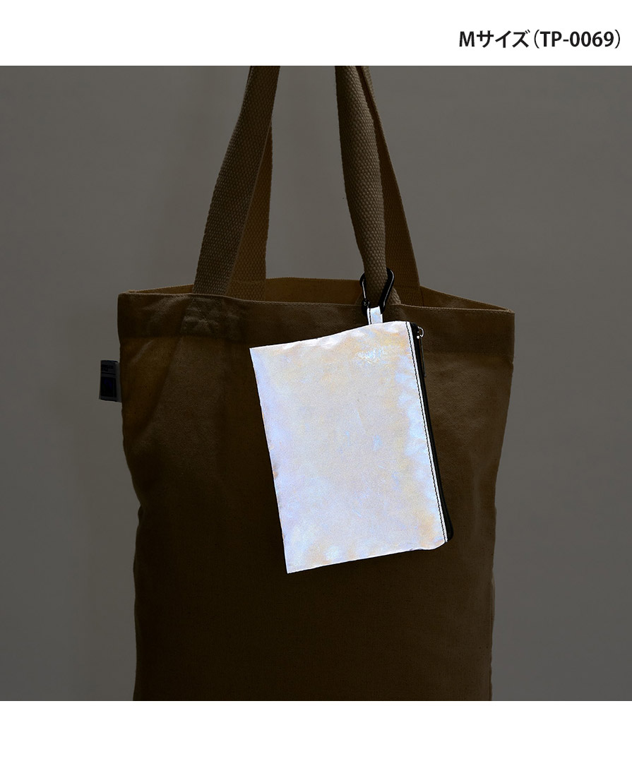 S・Mの2サイズ展開で、鍵やカードをまとめる小物用ポーチから、コスメポーチ・ガジェットポーチまで用途に合わせて選べます。反射材ポーチでありながらデザインはシンプル、ユニセックスで使いやすいのも魅力。