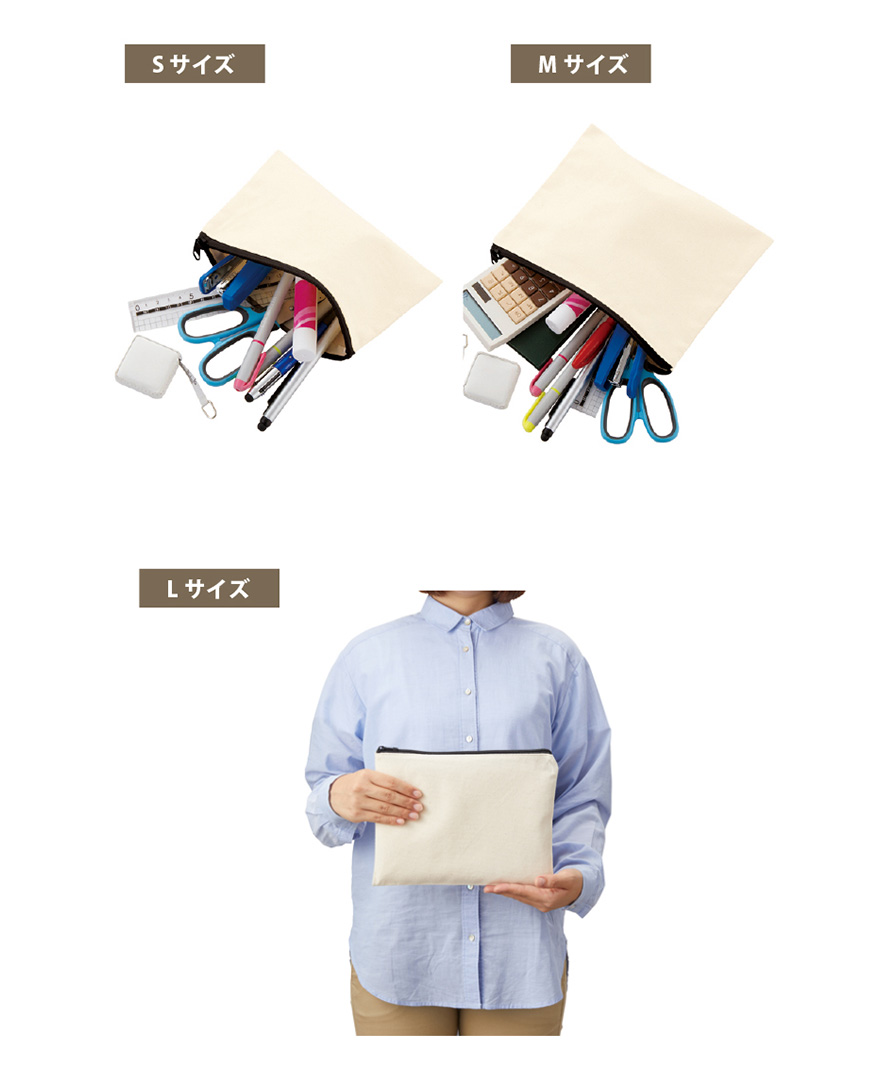 フェアトレードコットンキャンバスフラットポーチ(S)(M)(L)