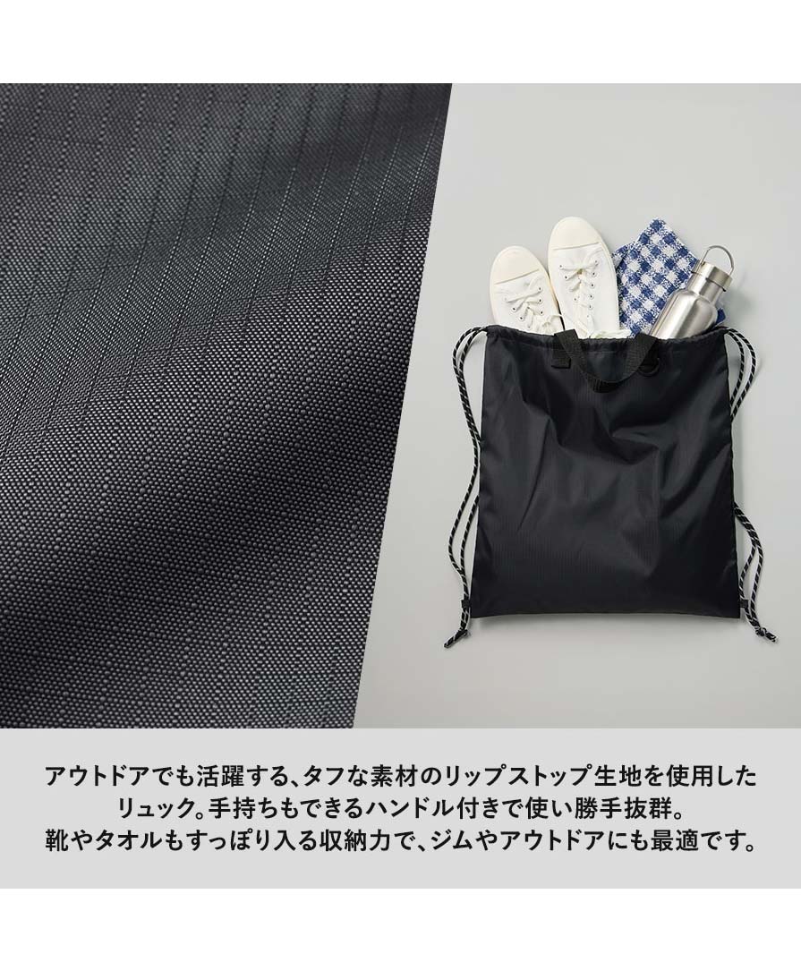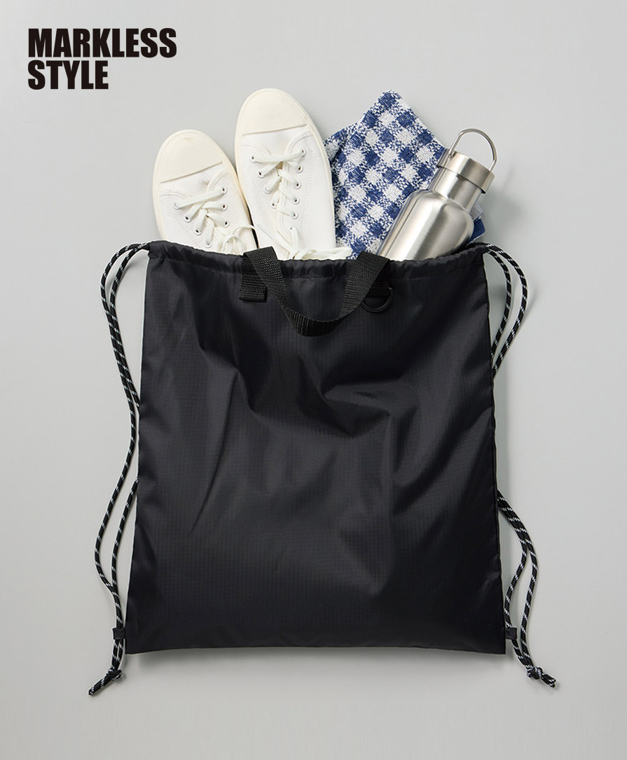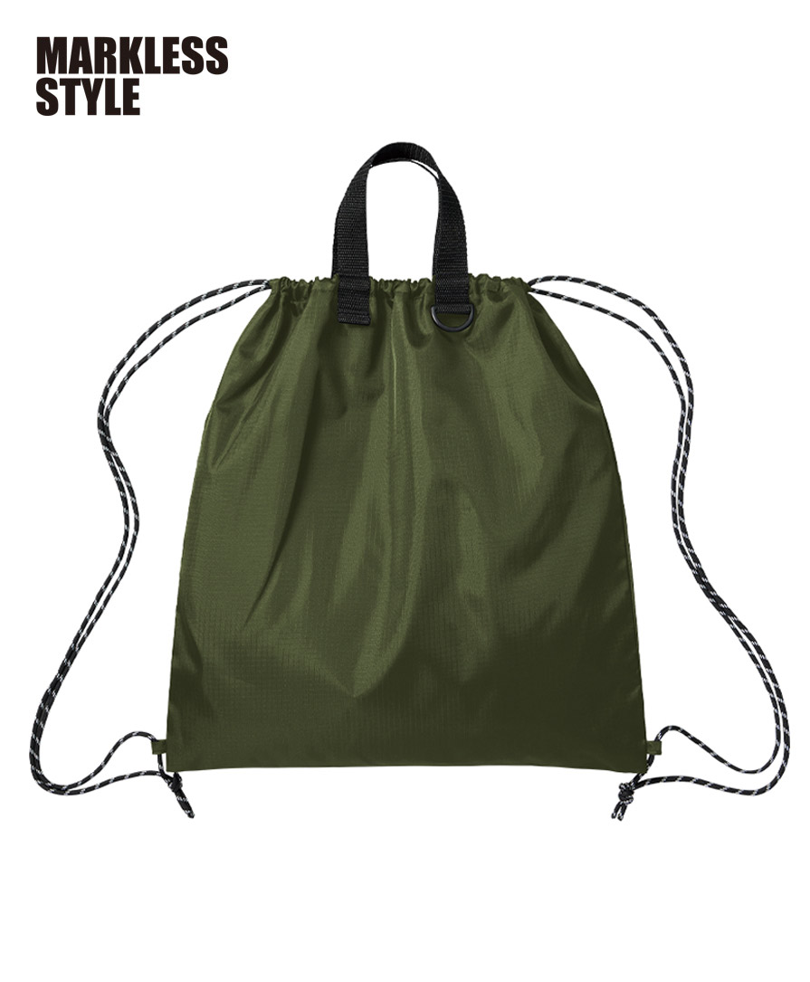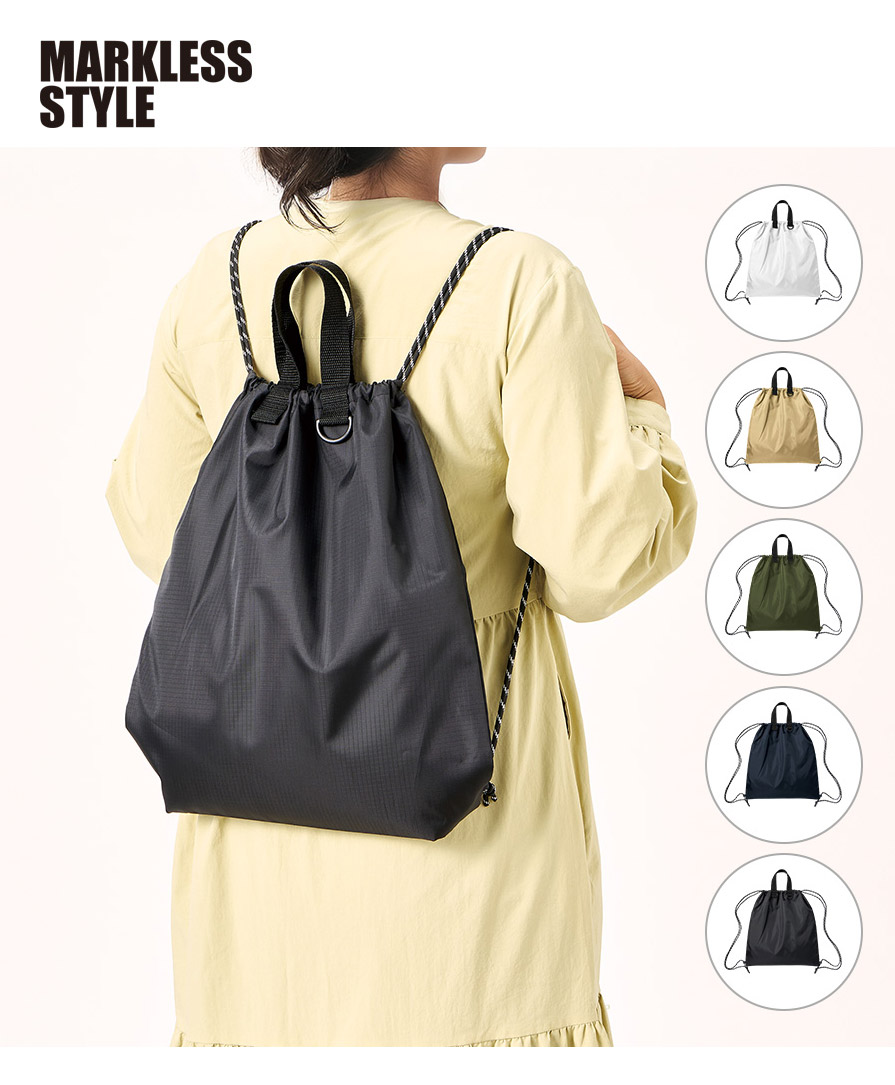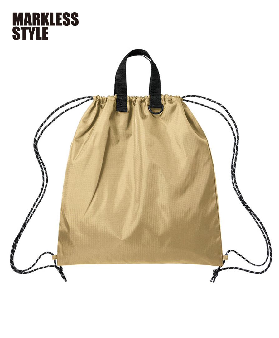 タフさと軽さを両取りした MARKLESS STYLE(マークレススタイル) のリップストップリュック〈TR-1427〉。細かな格子のリップストップ生地で軽量なのにガシガシ使えるバックパックです。ハンドルにはDカンを装備し、カラビナやキーホルダーでアレンジも自在。柄紐のショルダーが程よいアクセントになり、通学・通勤のデイパックからフェスや旅行のサブバッグ、ジムバッグやスポーツバッグまで幅広くマッチ。靴やタオル、ウェアも収まる頼れる大容量で、ユニセックスバッグとして日常に溶け込みます。