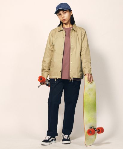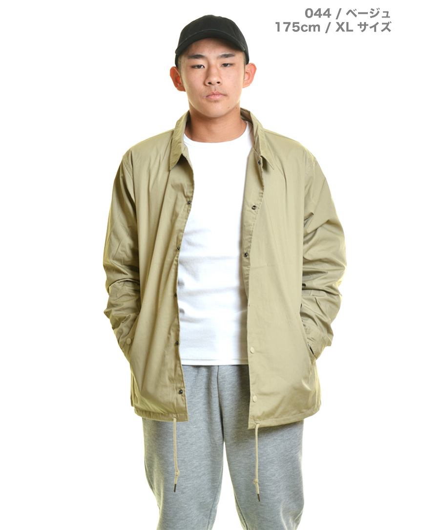 秋冬トレンドの大注目アイテム! 素材、シルエットにもこだわりぬいたT/Cウェザー素材のコーチジャケット! マットな仕上がりのT/C素材は、ポリエステルの耐久性と綿の快適性を適度に兼ね備え、型くずれが少ないのが魅力です。DOTボタンはYKK社使用。 シンプルなスタイルでありながらも、ディティールまでこだわりぬいています。無地のままでもスタイリッシュなコーチジャケットですが、オリジナルのプリントを入れてもグッドなアイテム。裾フラシ仕様となっているので、プリンタブル用としても必見です。アパレル物販の二次加工用、ショップや、企業のユニフォーム用など、様々な用途でご利用頂けます。 オレンジパームでも1枚からオリジナル加工を格安で承っておりますので、どうぞお気軽にお問い合わせくださいね。 【ポリエステル素材に関してのお取り扱い注意】ポリエステル素材の製品は使用している染料の特徴として、プリントや熱加工時の状況、および保管環境・条件等により昇華移染(ブリード)を起こすことがあります。 熱加工は120℃以下を推奨しますが、120℃以下でもブリードを起こすことがありますので温度管理にご注意ください。 ブリードの発生を更に抑制するためには、ローブリードインクのご使用を推奨いたします。【プリント加工製品の洗濯に関してのお取り扱い注意】染料の特性上、初回の洗濯時に色落ちすることがあります。必ず単独での洗濯をお願いいたします。洗濯には適量の家庭用洗濯洗剤をご使用ください。色落ちした染料の製品への再付着を防止することができます。