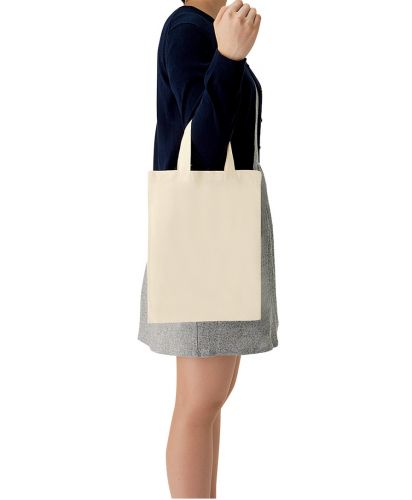 展示会やオープンキャンパス、セミナーなどでの配布物をスタイリッシュに収納できるマチなしタイプのトートバッグです。コットン100%の自然素材を使用したこのバッグは、軽量でコンパクトながら、A4サイズのファイルやカタログがぴったりと収まる実用性が魅力です。