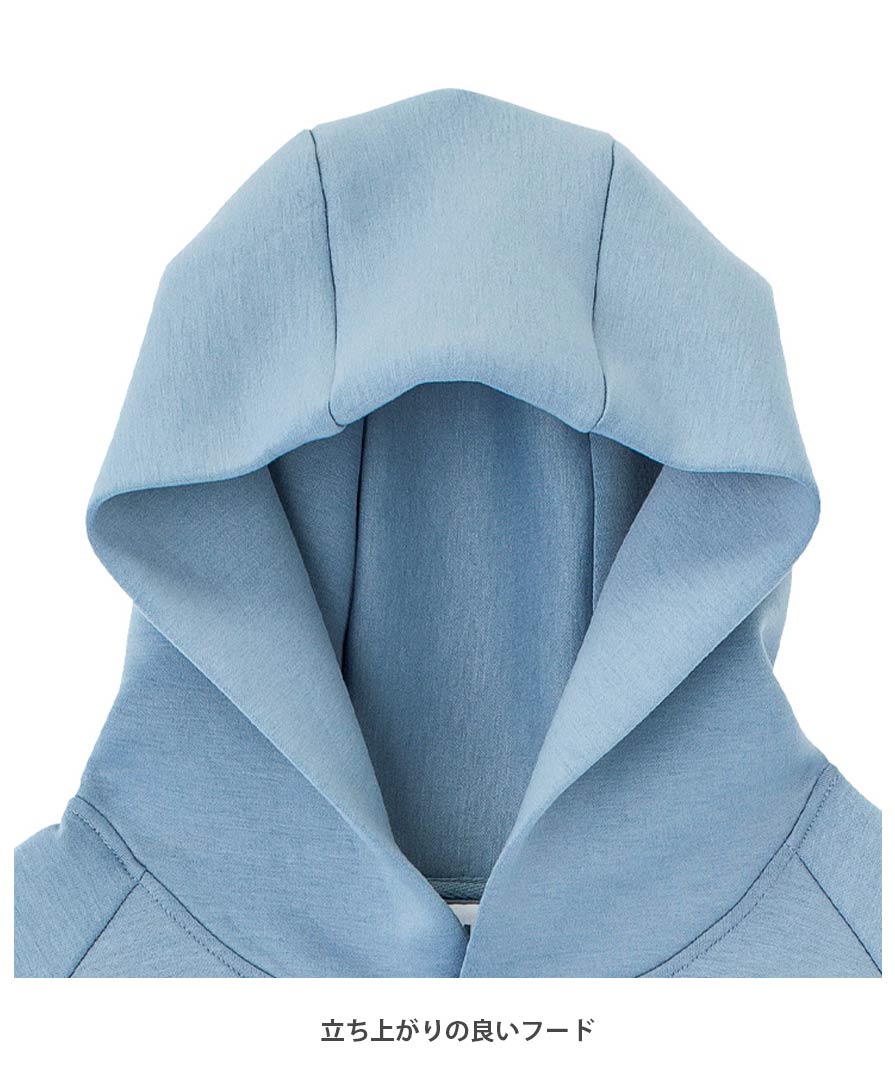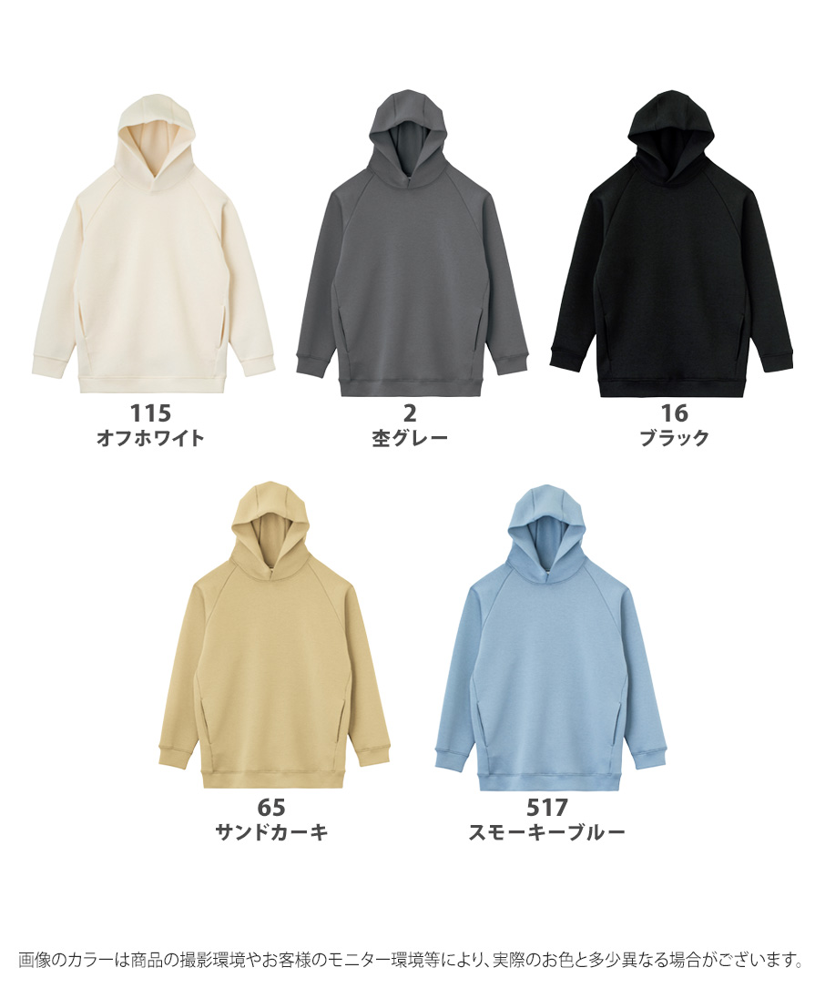 素材だけでなく、デザインやディティールにもさりげないこだわりあり。肩まわりの自由度が高い 旬なラグランスリーブ仕様。素材を生かした立ち上がりの良い立体フード。パーカーに多いカンガルーポケットではなく、サイドポケットのスッキリとしたデザインもポイント。フロントのプリント面も広く取れるので、プリンタブル用としても必見です。