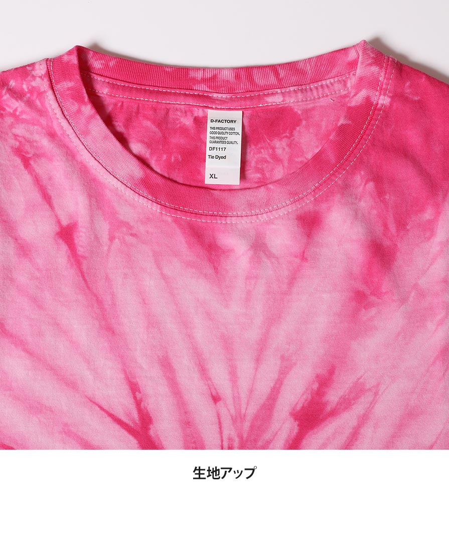 スパイラルタイダイのビビットな色彩と、厚手Tシャツの安心感を両立した、D-FACTORY 6.6オンス プレミアムスパイラルTシャツ(DF1117)。スパイラルTシャツならでは躍動感ある絞り染め表現は、フェスTシャツやイベントTシャツ、ライブ物販Tシャツとしても抜群の存在感を放ちます。