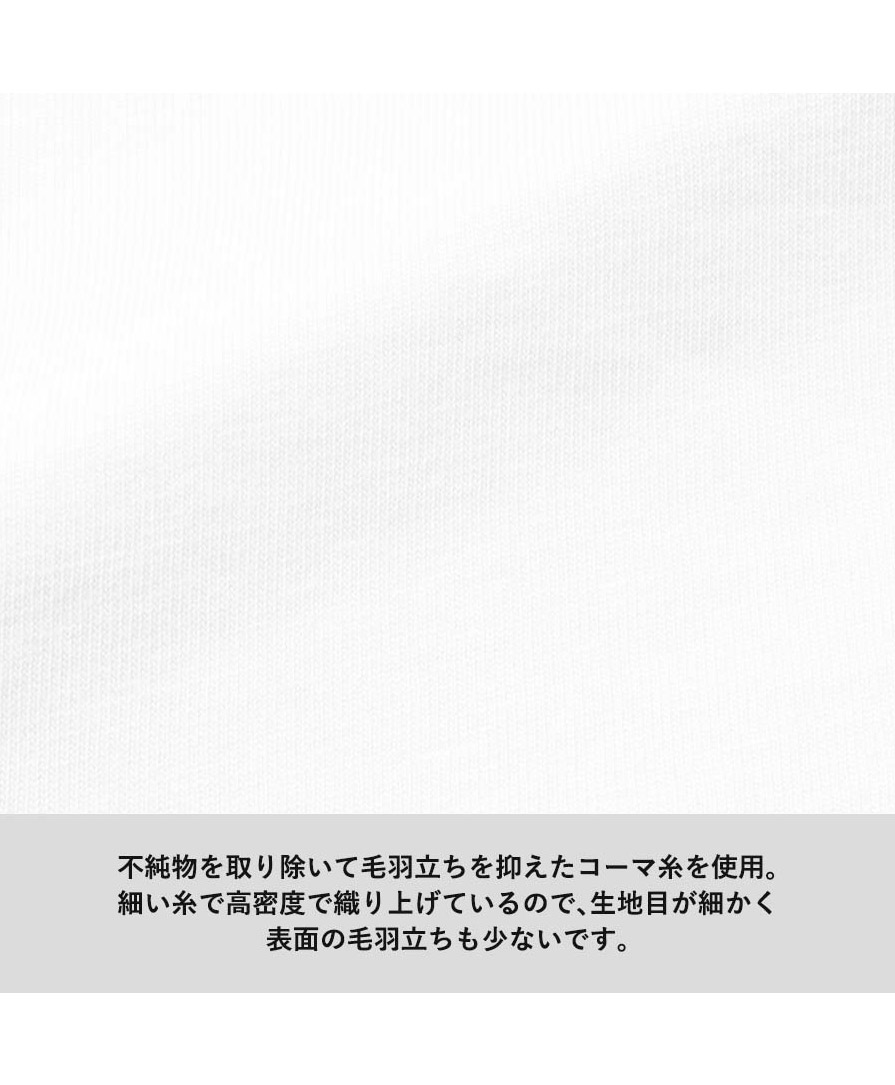 胴体部分を筒状に編み上げる「丸胴仕上げ」により、脇下の縫い目による摩擦を排除。なめらかな着心地が長時間持続します。また、首まわりにはダブルステッチを施し、首裏から肩にかけてはテープ留めで補強。洗濯を繰り返しても型崩れしにくく、デイリーユースに耐えうるタフな耐久性を備えています。