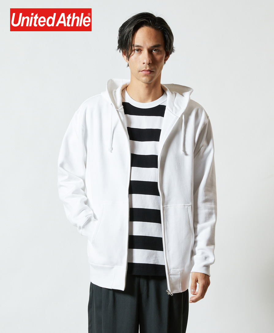 カラー&サイズ豊富で着まわしやすさが大人気!ユナイテッドアスレで大人気の定番フルジップパーカー!フード部分が二重でしっかりとしたつくりが魅力。素材は、丁度良い厚みの10オンスの裏パイル(裏毛)。伸縮性と吸水性があり、着心地も抜群です。気軽に羽織れるジップパーカーは、コーディネートの仕上げにとっても役立つアイテム。キッズパーカーは、安全のためフードの紐無しの仕様となっております。普段用はもちろんのこと、様々なユニフォーム用としても最適です。無地のままカラーを揃えるだけでも、格安なユニフォームとしてご活用いただいております。同素材の、5017-01とセットアップも可能です。アパレルやライブ等の物販用から、店舗やイベントのユニフォーム用まで、いろいろなシーンで大変人気の高いジップパーカーです。オリジナルの刺繍やプリント加工も1枚から承ってますので、ぜひ、ご相談くださいね。もちろん、無地のままでも1枚から卸販売中。ユナイテッドアスレの正規卸販売店として、どこよりもお安く通販可能です。※s/#5017とセットアップを組むことは可能ですが、上下にて商品の色が完全に合わない場合がございます。予めご理解の上ご購入くださいますようお願い申し上げます。