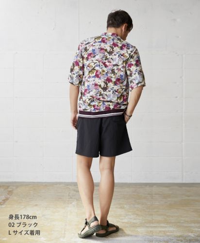 ナイロン100%右ポケット内側にゴム紐付きサイド&ヒップポケットの内側にメッシュ生地を使用(水抜き仕様)ウエストは平ゴム入り&ドローコード付きサイドポケット上下にカン抜きステッチ補強ありヒップポケットにはスナップ釦付き
