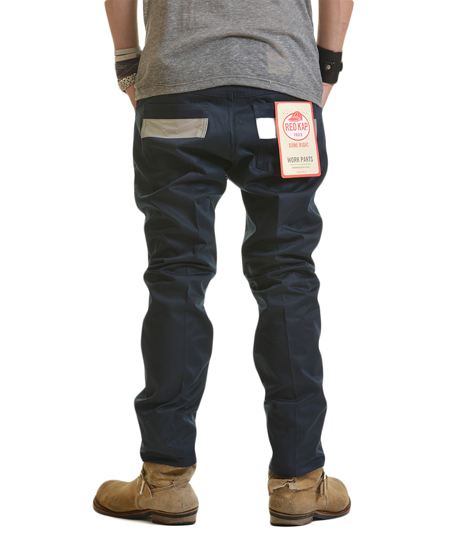 RED KAPの伝統的レスキュースタイル! トレンド感たっぷりの9分丈のリフレクター付きジーンカットパンツ。ところどころ施されたリフレクターがおしゃれなファッション性の高さが大人気の、5ポケット付きのパンツです。バックポケット、コインポケット、そして、裾を折り曲げるとリフレクターがキラリ!T/C(ポリ・コットン)へヴィーツイルのしっかり素材は、耐久性抜群でシワになりにくく、お手入れも簡単です。流行の、ちょい短めの9分丈が、さらにハイセンスを促しています。こちらのRED KAPリフレクターパンツは、数量限定の在庫限りとなっております。レアアイテムなので、早い者勝ちですよ。