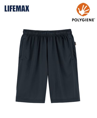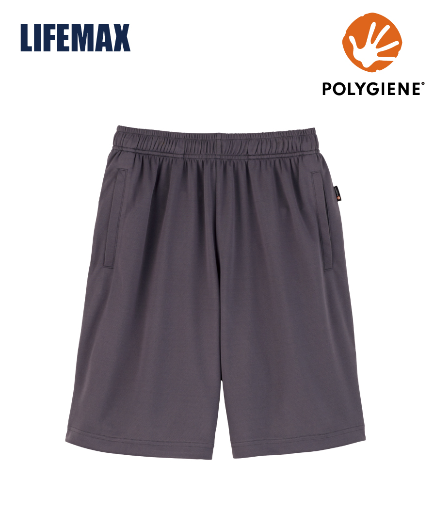 気になる汗のにおいや部屋干し臭の原因となるバクテリアの繁殖を銀イオンの効果で抑える【ポリジン加工】を施したハーフパンツです。 繊維そのものに加工を施してあるため、洗濯に強く抗菌防臭効果が長年持続します。