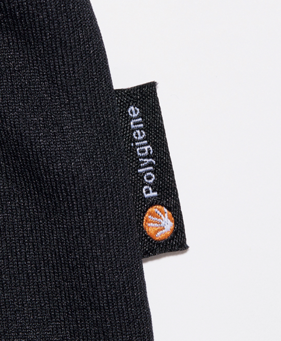 ポリジン加工とはスウェーデン発の銀イオンによる抗菌防臭加工。原因菌の成長を抑制し、においの発生を防ぐ。有効成分の塩化銀はリサイクルされた銀を使用。環境にやさしく無香料なので周りの人にも安心です。