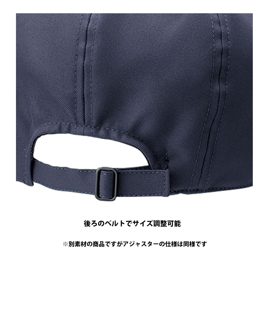 素材はポリエステル65%・綿35%のツイル生地。耐久性が高くシワになりにくいイージーケア仕様で、毎日の洗濯にも強く、清潔感をキープできます。撥水機能付きで水や汚れを弾くため、飲食店や屋外イベントなどでも安心して着用可能。さらに、後ろのアジャスターでサイズ調整ができ、男女兼用で快適にフィットします。