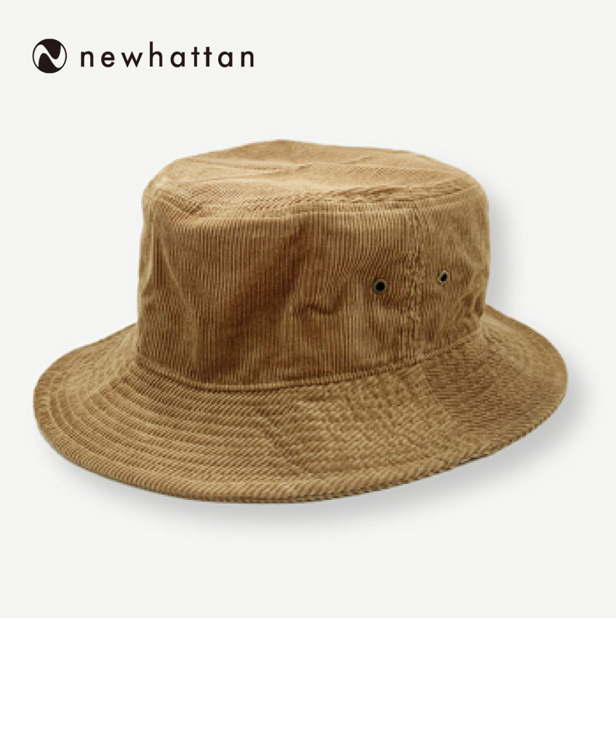クラシカルでありながら、トレンド感も抜群!アメリカ・ニューヨーク発の人気ブランド、 NEWHATTAN(ニューハッタン) のコーデュロイバケットハット。 柔らかい肌触りと深めの被り心地が特徴で、どんなコーディネートにもマッチするシンプルなデザインなので、秋冬のコーディネートに大活躍間違いなし! 左右に施されたアンティークゴールドのハトメホールが、さりげないアクセントと通気性をプラス。摩擦や水分に強い耐久性で、長く愛用できるのも嬉しいポイントです。