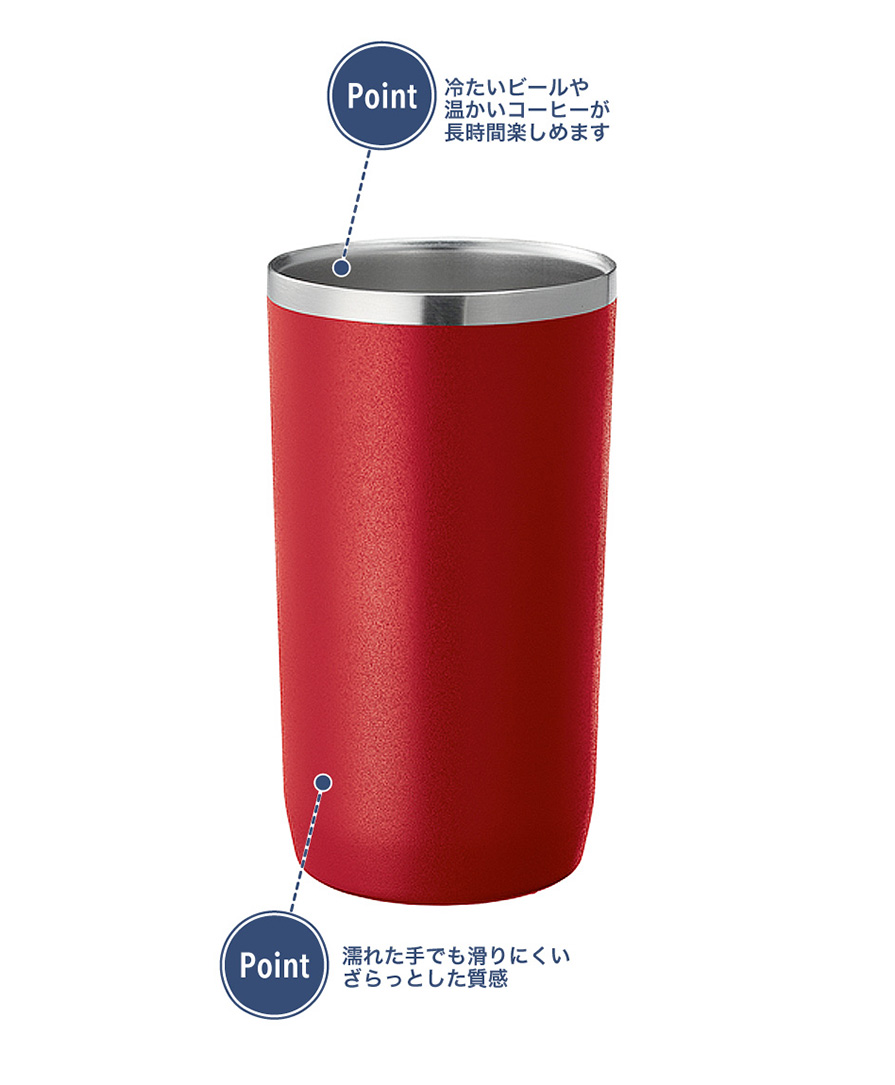 中ジョッキほどの大容量のステンレスのサーモタンブラー!底をグラスコップの様な丸みを帯びた形状にし、スタイリッシュなステンレスに温かみをプラス!スタイリッシュな見た目と、使いやすさも抜群なので、オフィスでもご自宅でもかなり重宝します。真空二層構造なので、保冷保温性も高く、錆びにくく汚れも付きにくいステンレス(18-8)を使用しているので機能面も申し分ありません。シンプルながらセンスが光る逸品です。様々なイベントの記念品やギフト、アパレルショップの物販用としても大変人気の高いアイテムです。名入れも可能なので、引き出物やお祝いのプレゼント用としてもおすすめです。温度をしっかりキープできるので、アウトドアでの使用にも最適。スポーツチームのオフィシャルグッズや、アウトドアイベントで販売してもいいですね!オリジナルプリント加工についてはこちらから