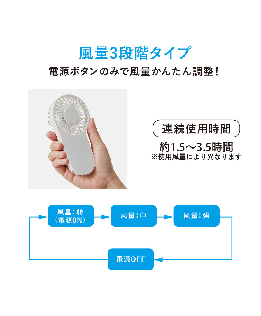 コンパクトハンディUSBファン/ USB電源・風量調節3段階・2WAY