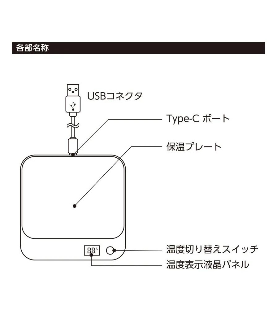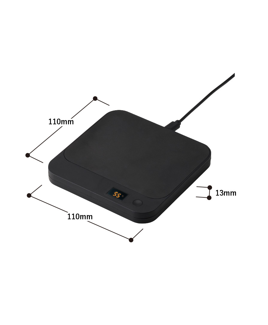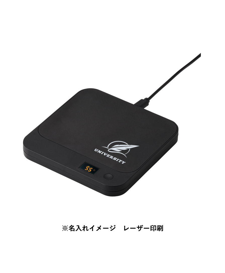 付属のType-Cケーブルは取り外し可能な仕様のためかさばりにくく、持ち運びや収納の際にも便利。コンパクトなデザインで、オフィスデスクや自宅での利用に最適です。ウォーマー部分には広い名入れ範囲があり、ディスプレイ横にもワンポイントの印刷が可能なので、企業のノベルティやオリジナルグッズとしても活躍します。