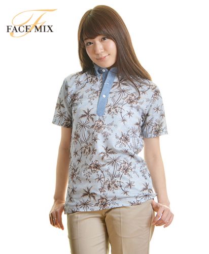 清潔感ある花柄がワンポイント。レディースポロシャツ