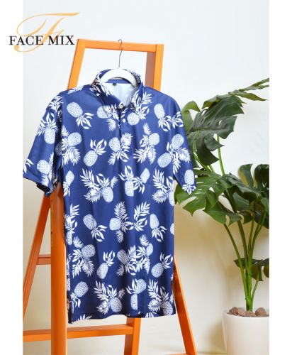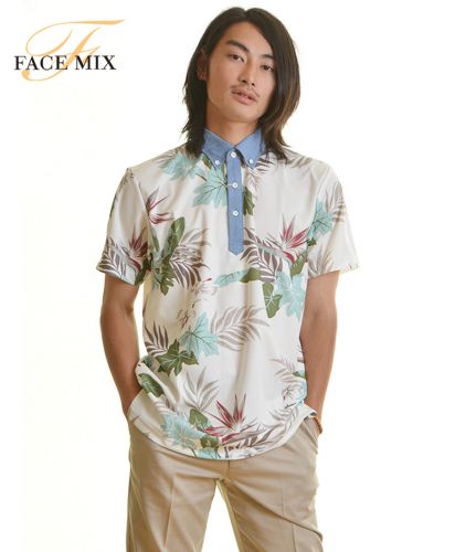 清潔感ある花柄がワンポイント。メンズポロシャツ