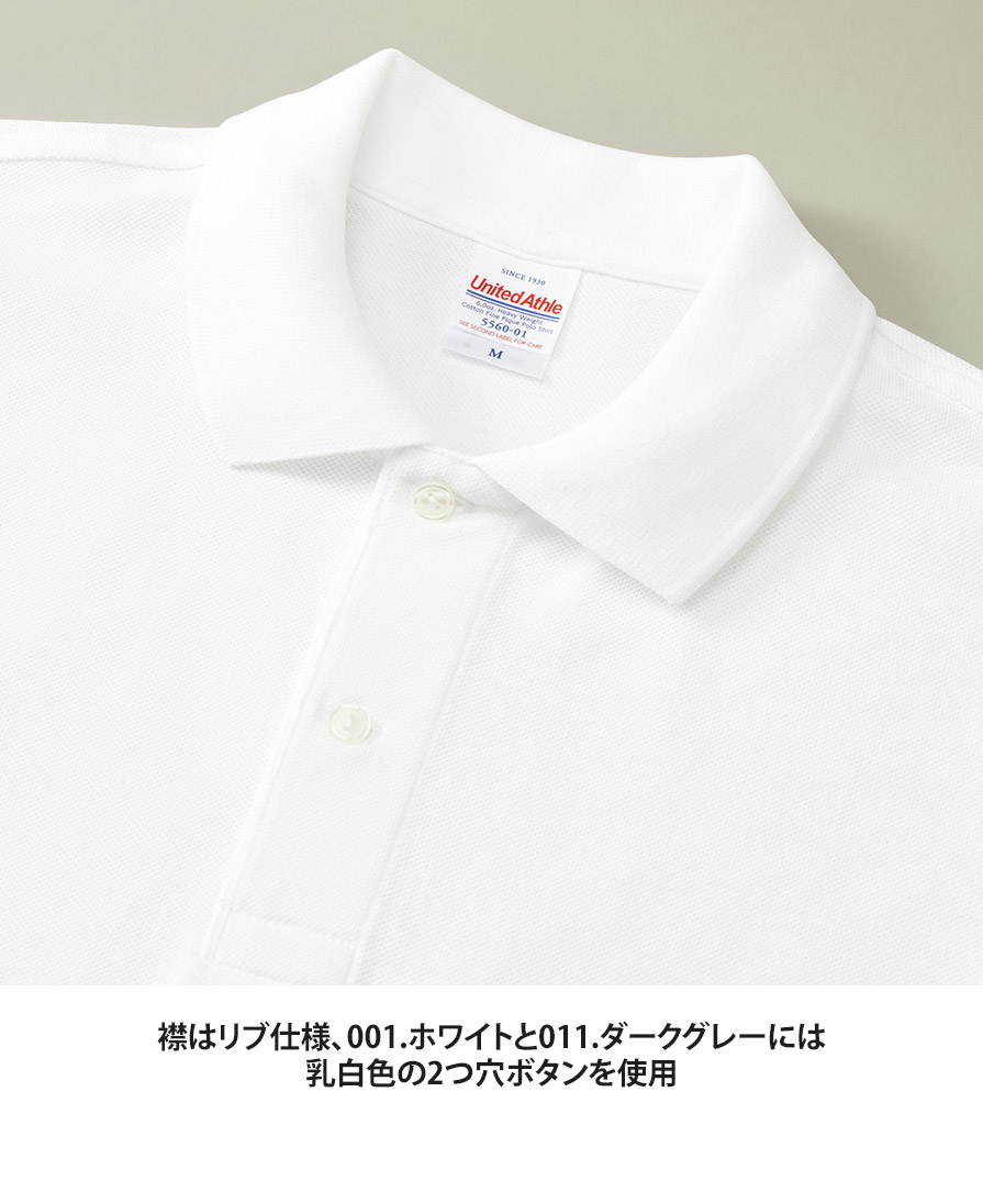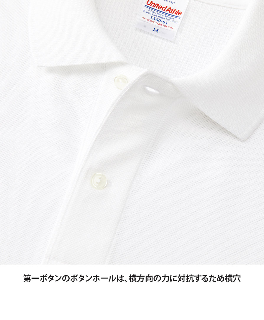きちんと感も、着心地も、妥協しない。ユナイテッドアスレ(United Athle)6.0オンス ヘヴィーウェイト コットン ファイン カノコ ポロシャツ(5560-01)は、毎日頼れる上質さをまとった大人のためのポロシャツ。毛羽立ちの少ないコンパクトコーマ糸で編み立てた鹿の子ポロシャツは、なめらかな肌触りと上品ポロシャツらしい表情が魅力です。凹凸のある編み地が肌との接地面を減らし、通気性も良好。汗ばむ季節でもさらっと快適で、綿100%ポロシャツならではの自然な風合いが続きます。