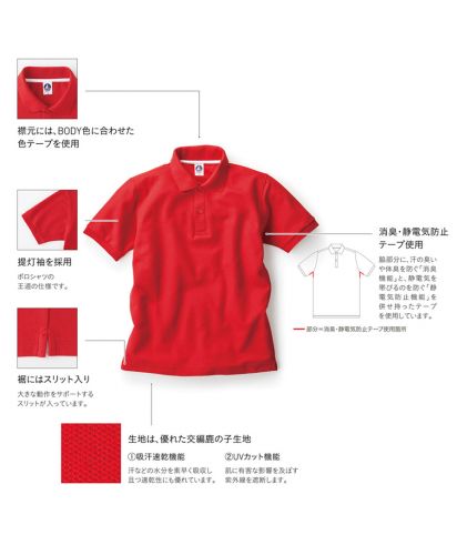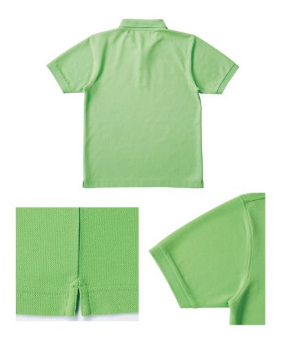 脇下に消臭・静電気防止テープを使用。お肌に優しいUVカット、吸汗速乾など。機能性抜群のベーシックで清涼感溢れる鹿の子ポロシャツです。裾にスリット入りで動きやすいのでスタッフユニフォームにも最適。上までボタンをしめるとバックスタイルがとってもシャープに見えるところもポイント。しっかり生地の5.8ozは、カジュアルな装いのトップスとしても大活躍します。オレンジパームでは、オリジナルポロシャツの作成まで一貫して承っております。