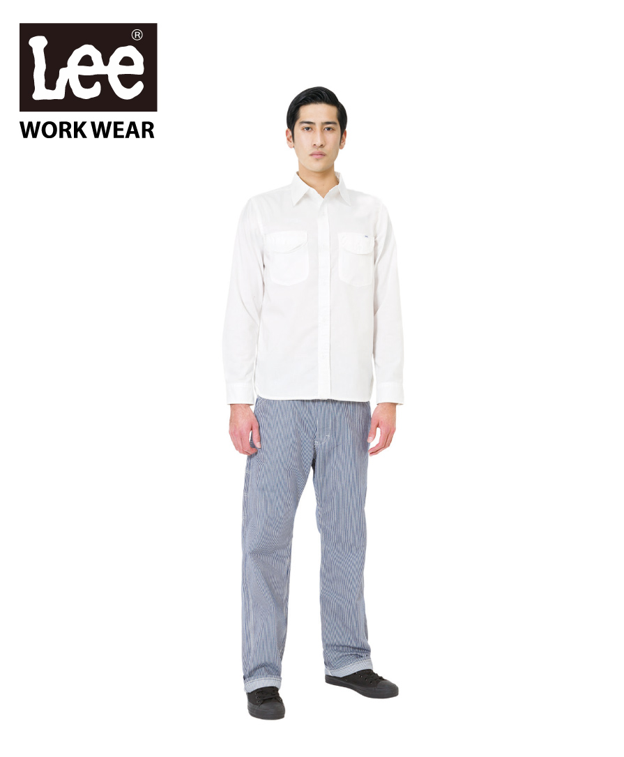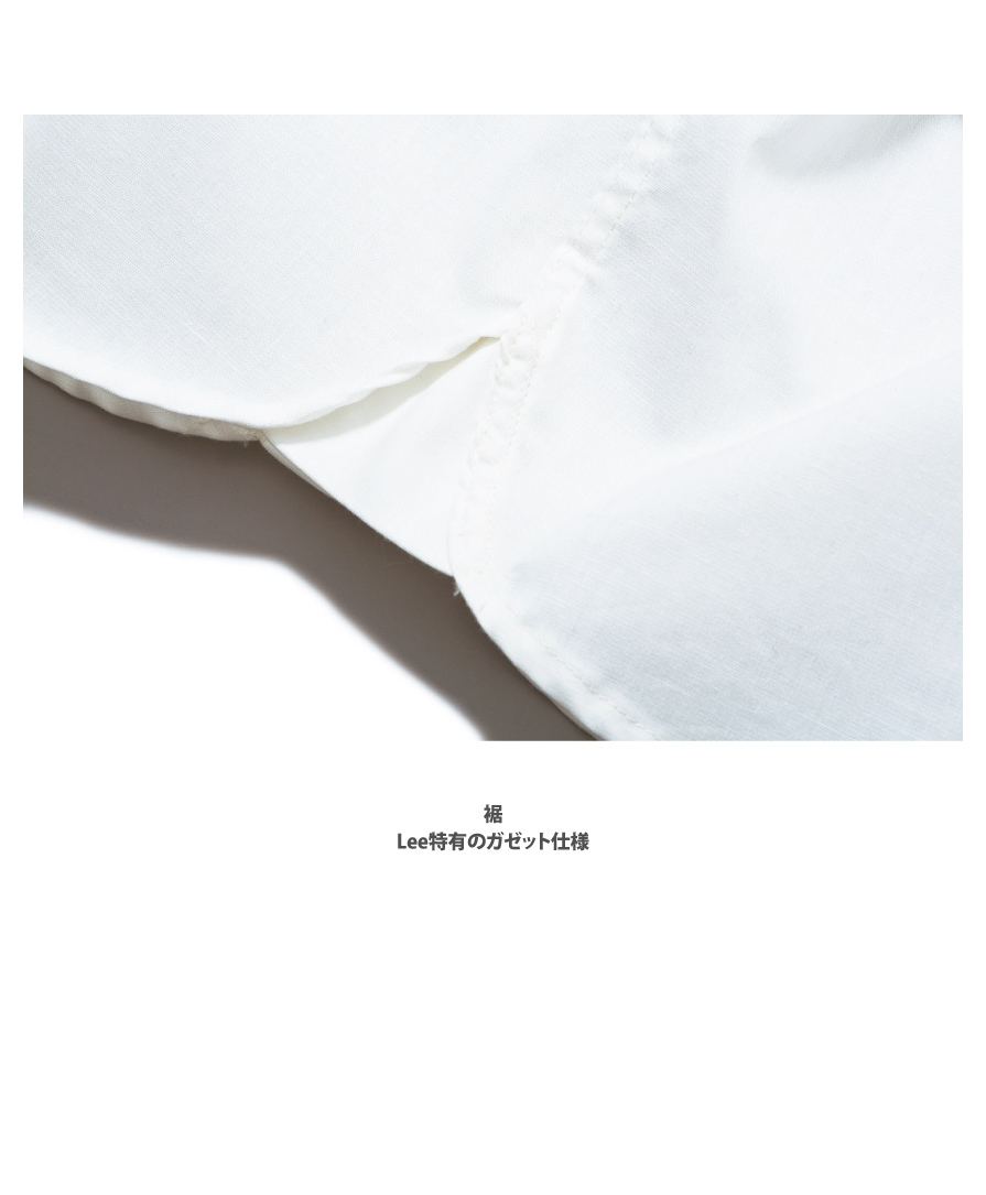 シンプルなデザインながらも、バイアス使いのポケットやLeeの特徴的なピスネームやペン挿しなど、Leeのデザインディティールが光る、さりげないおしゃれ感がポイント!裾サイドにあしらわれたLee独特のガゼット(補強布)で耐久面も優れています。