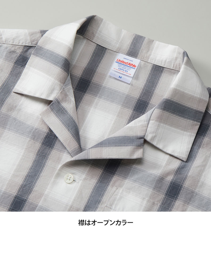 United Athle チェック柄が映えるアメカジ風デザインの開襟シャツ!スケーターやグランジなどストリート系ファッションから、こだわりのカフェユニフォームまで幅広く対応。刺繍やプリント加工もOK