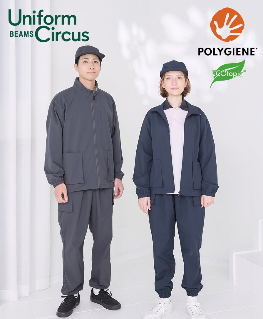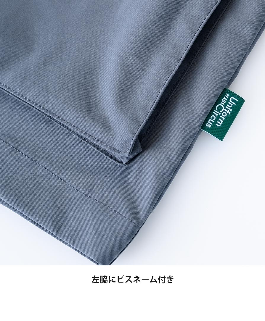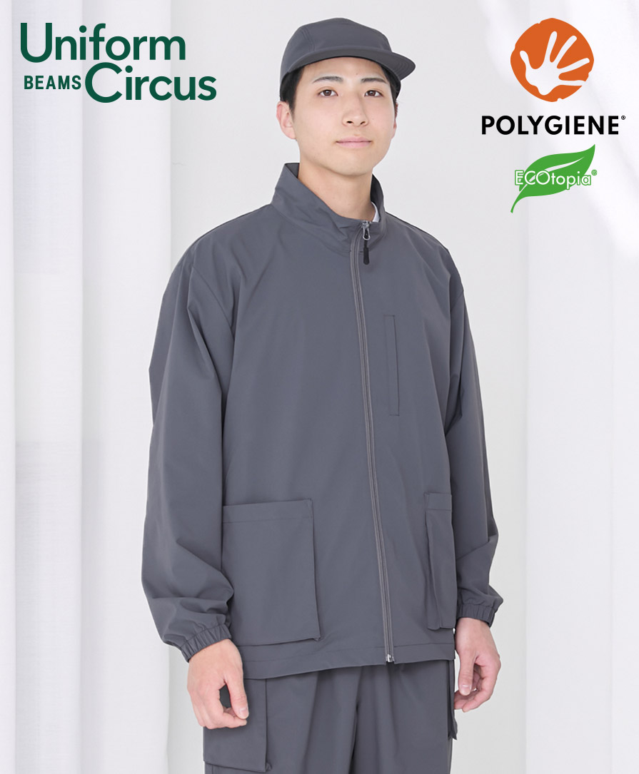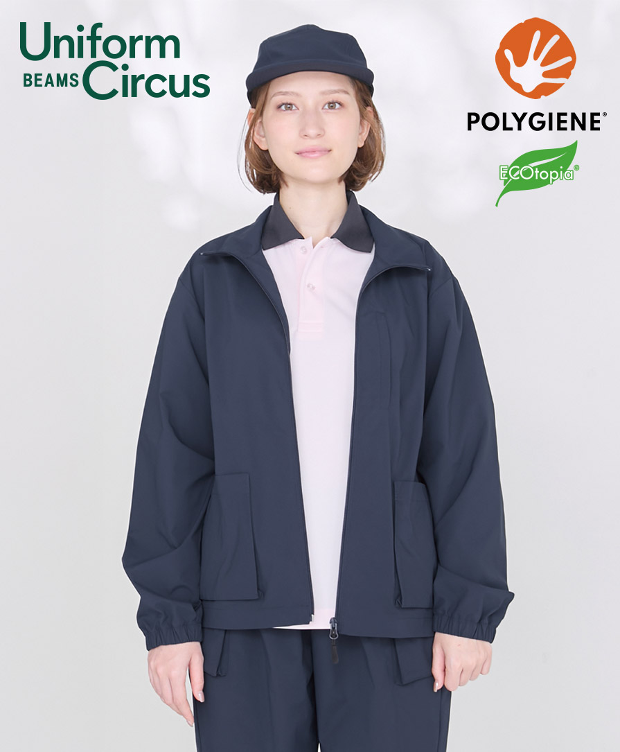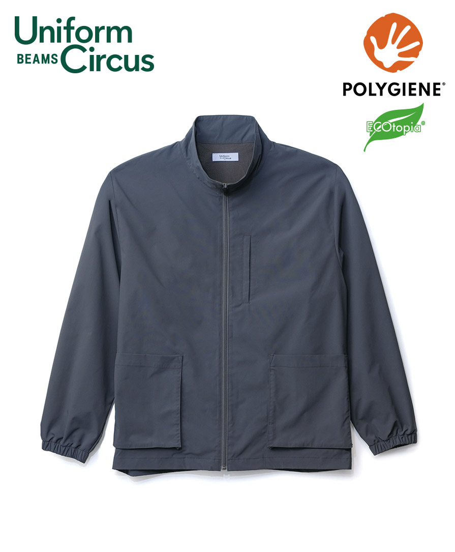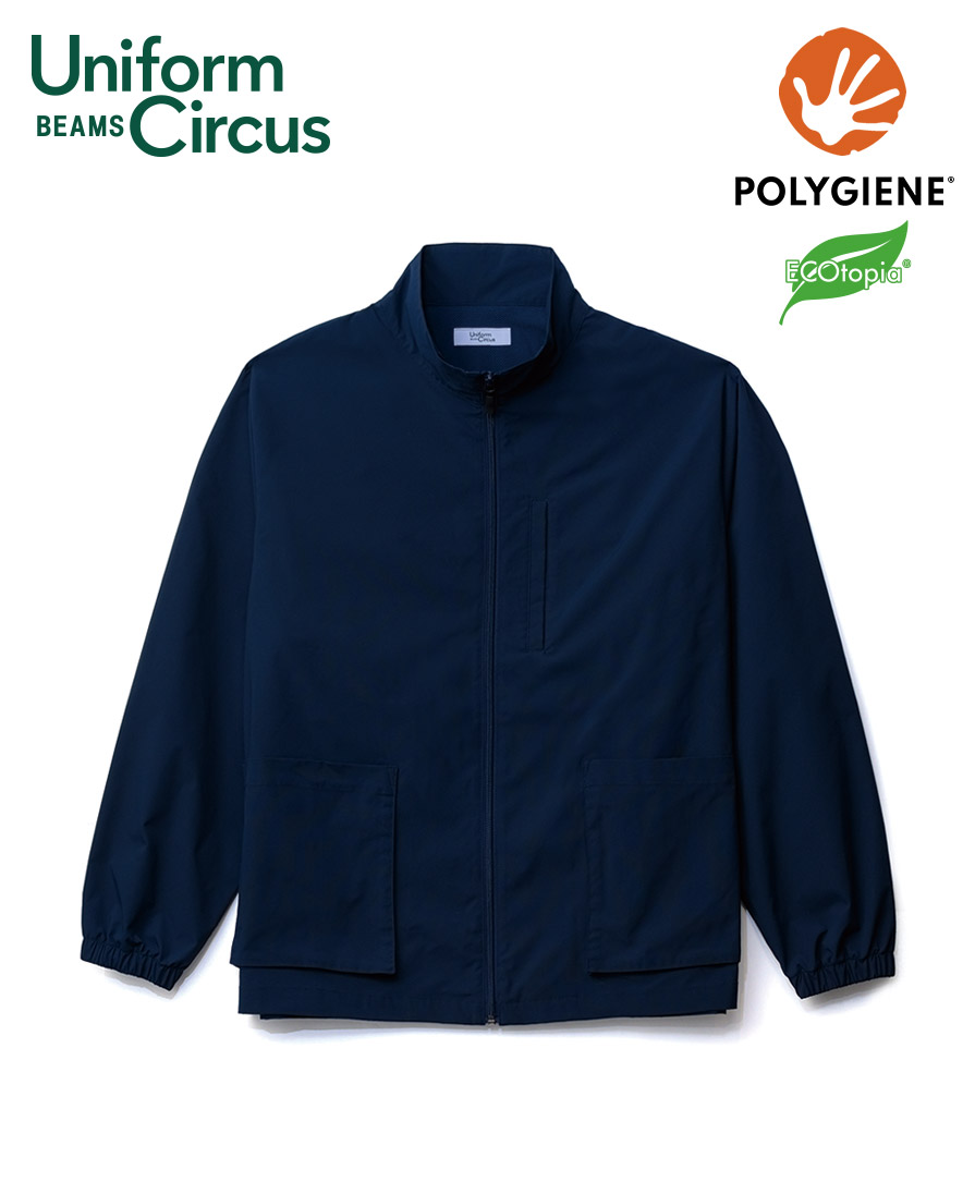 人気セレクトショップ「BEAMS」がプロデュースするユニフォームレーベル Uniform Circus BEAMS のユニセックスジャケット。清潔感と動きやすさ、ファッション性、ワークシーンにちょうどいい機能美を詰め込んだユニフォームジャケットです。ポリジン加工による抗菌防臭仕様で、汗をかきやすい現場でもニオイを抑え、長時間着用してもクリーンな印象をキープ。防風性のあるストレッチタフタ素材は、軽やかでしなやか。身体の動きに自然にフィットし、アクティブな業務でもストレスを感じさせません。
