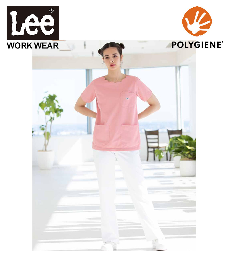 Lee(リー)Leeメディカル レディスパンツ/医療用・介護用・美容クリニック向けおしゃれスクラブ|抗菌防臭ポリジン加工・ピンクトップス×ホワイトパンツ