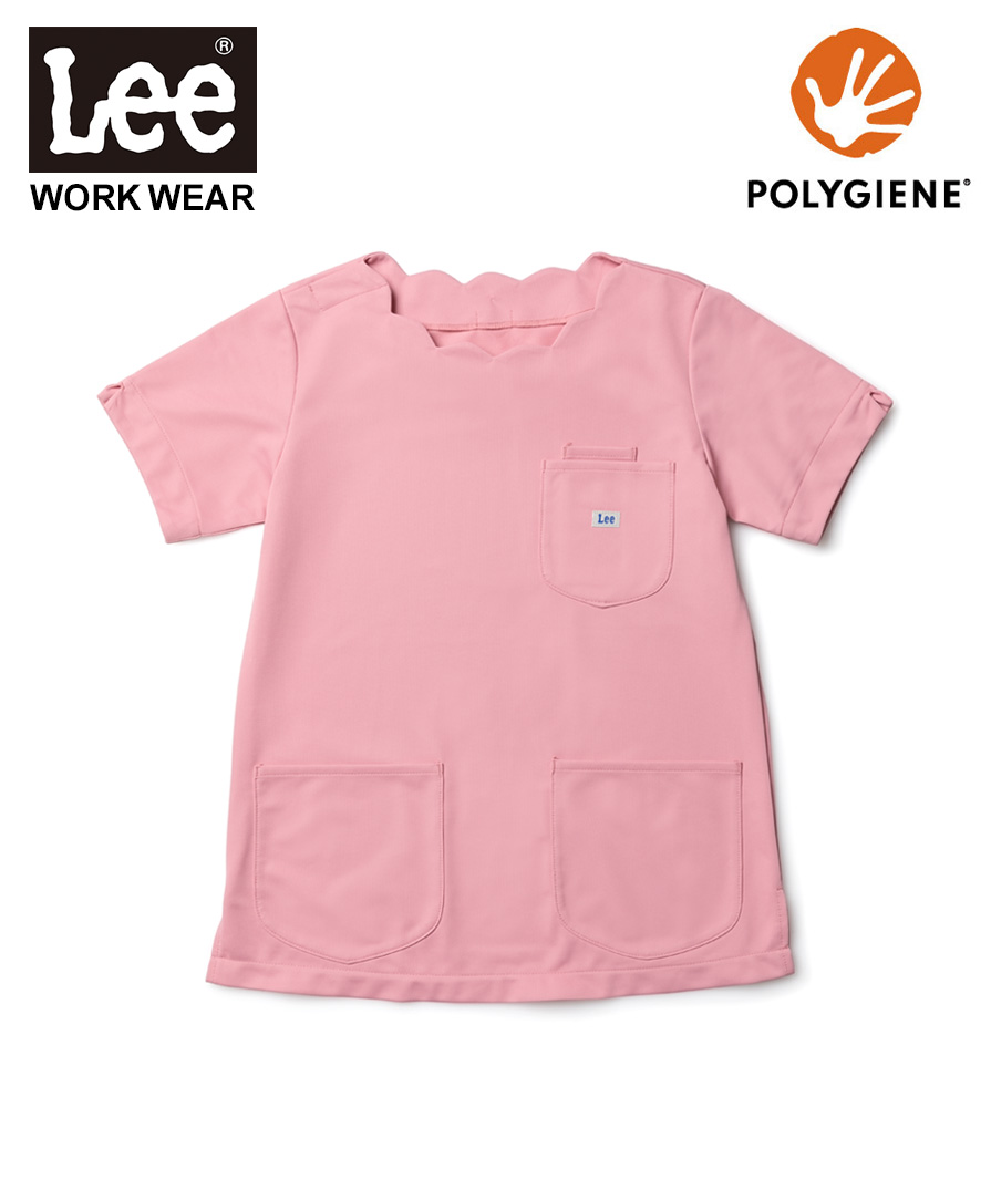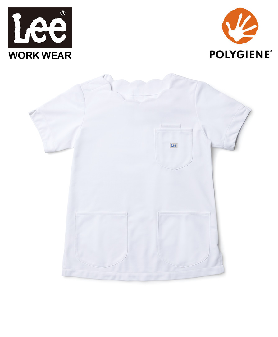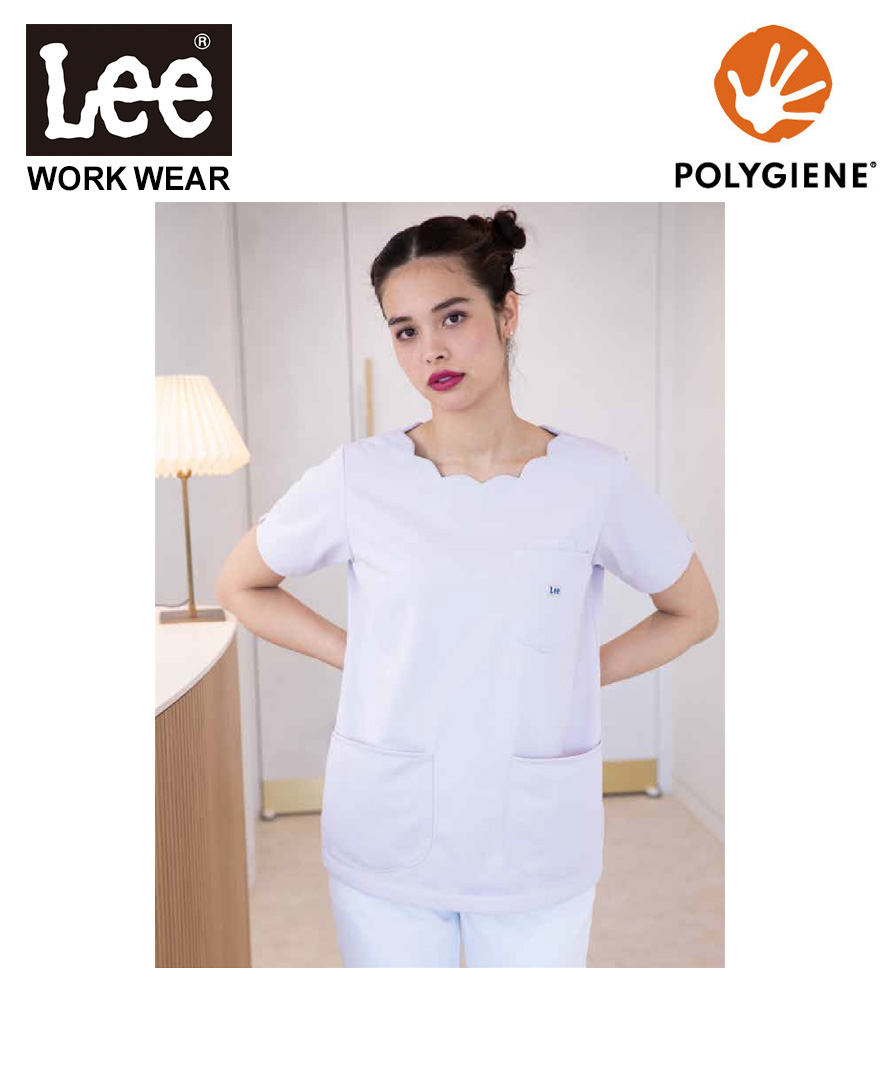 女性らしいやさしい雰囲気が魅力!スカラップネックのレディーススクラブ。Leeらしいタフさと機能性はそのままに、かわいさとプロらしさを両立したい女性スタッフにしっくりくる一着です。波打つようなスカラップネックが、顔まわりをふんわり明るく見せ、小児科や歯科、美容クリニックなどの、患者様に安心感や親しみやすさを与えたいユニフォームとしても好印象。トリコット素材のストレッチスクラブなので、診療や介助、長時間の立ち姿勢でも動きがスムーズでストレスが少ないのも嬉しいポイントです。